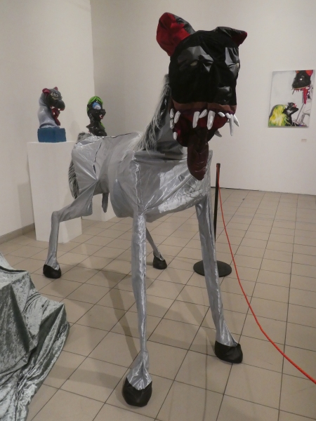 Baštýřová přetváří klasická sousoší v měkké textilní sochy – v bizarní, groteskní, místy až hravé příšery. Ty se následně stávají inspirací pro její kresby a malby, čímž otevírají nové pohledy a asociace. Přechod mezi médii zde není pouhým technickým experimentem, ale prostředkem k zachycení procesu, pohybu a proměnlivosti objektu.