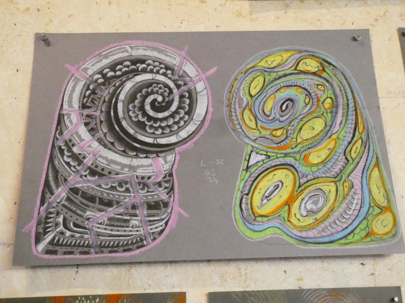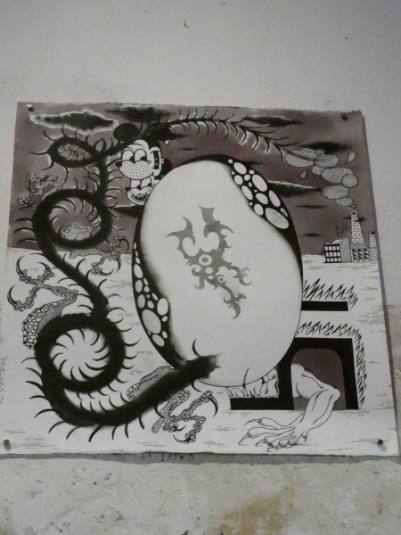 Výstava představuje fragmenty jeho tetovací minulosti, jež nesou prvky kosmických krajin, snových prostor i hlubokých myšlenkových toků. Tyto práce mohou působit jako tanec sférické hudby, jako ilustrace psychedelického prožitku nebo jako vizuální představa džungle v jiné dimenzi. Všechny jsou však zpracovány klasickými technikami kresby, malby, akvarelu, pastelek i voskovek.