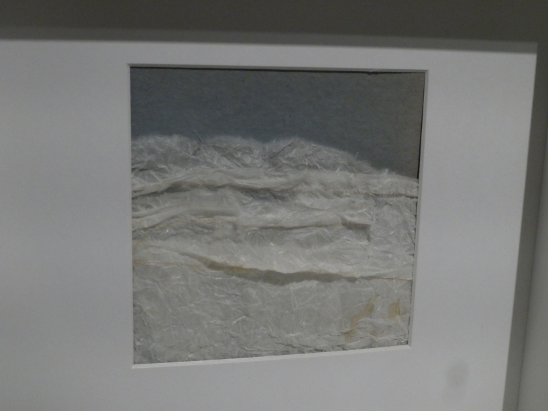 Autorka pracuje s textilií, papírem a sklem – s materiály, jež nesou stopy času a paměti.