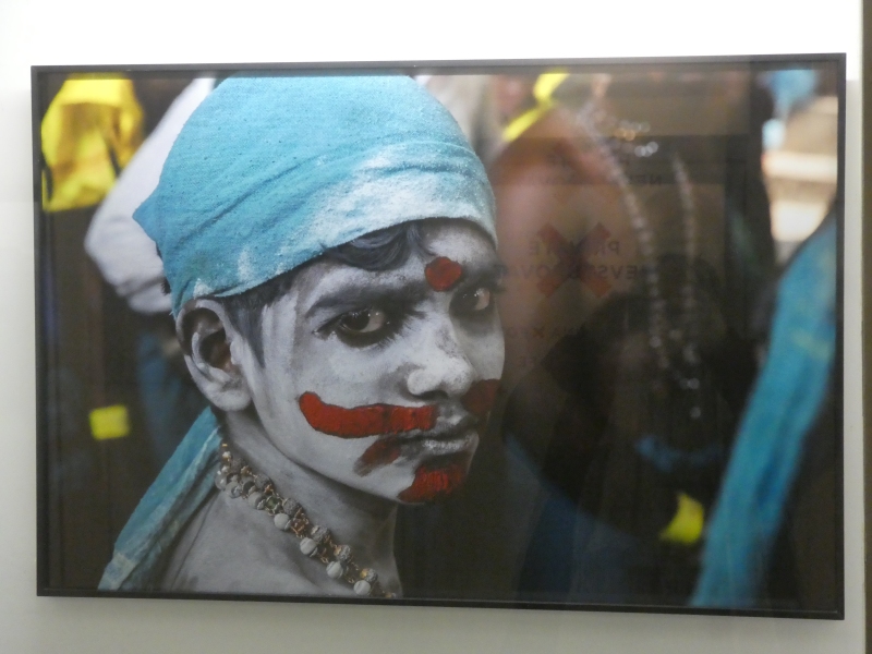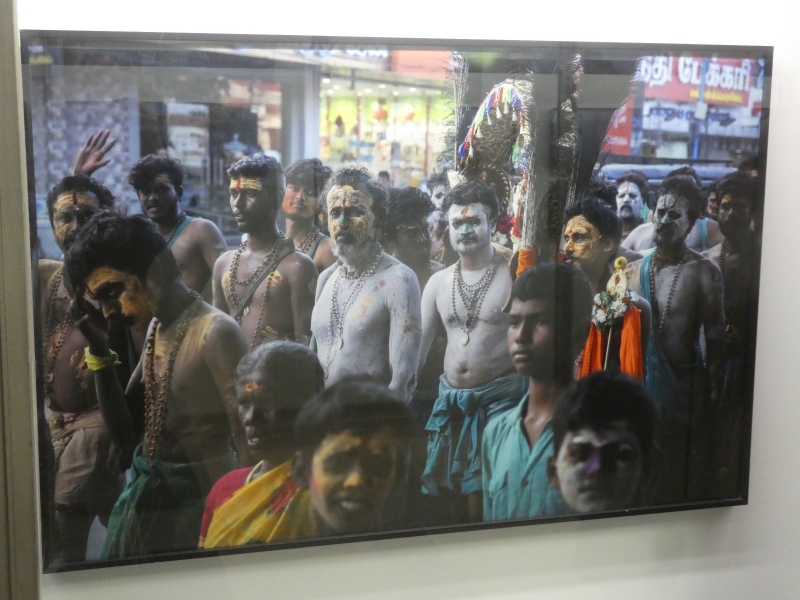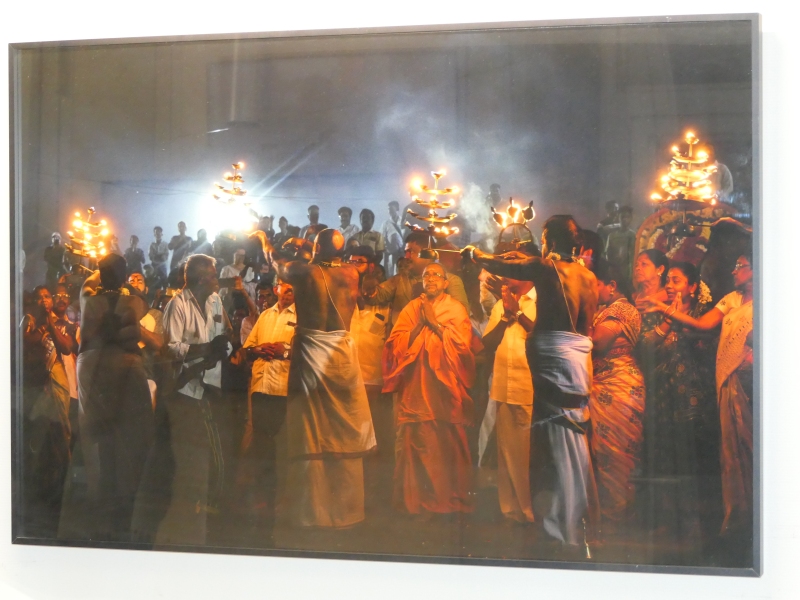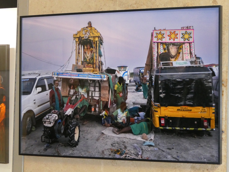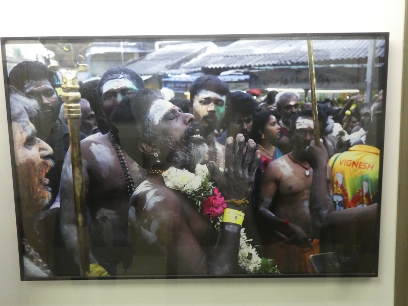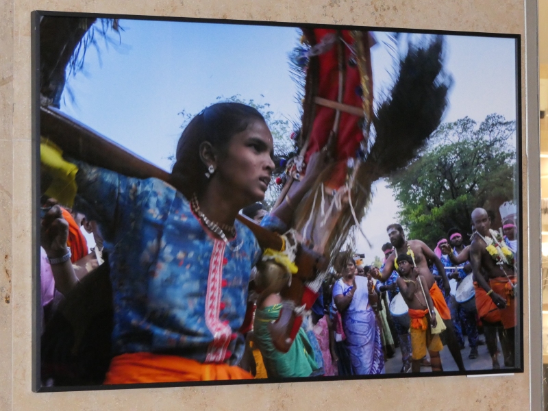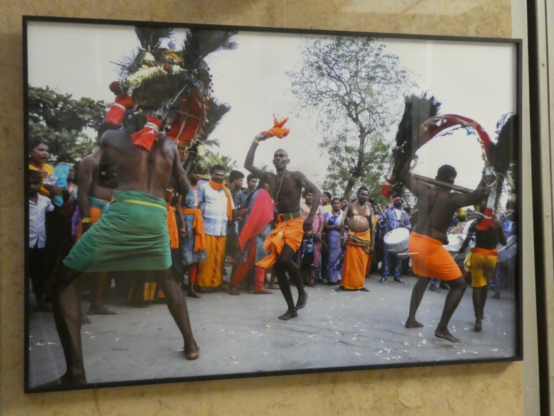 Pod zastřešeným koridorem se tlačí dav polonahých mužů. Těla mají lesklá potem, přes krky zavěšené věnce z žlutých květů. Někteří nesou na ramenou bohatě zdobené nosítko s postavou boha. Všude kolem se zvedají mobily, ruce, hlasy, chaos. Hudba duní.