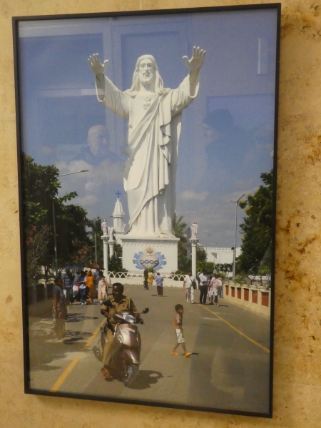 Na konci pláže začíná křesťanská čtvrť. V ranních paprscích se k nebi tyčí bělostný chrám jiného boha. I uličky jsou jaksi klidnější. Domy se podobají těm na druhé straně, jen u dveří nejsou vyobrazena Hinduistická božstva, ale ta křesťanská. Jedno však mají společné a to jsou obrazce namalované křídou před vchodem do domu. Mají chránit jejich obyvatele. Když se vracíme zpět k hinduistickému centru, proud poutníků sílí. Ulice se stává součástí rituálu.