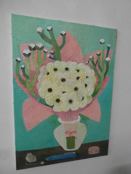 Obrazy Hany Puchové tvoří dva tematické proudy, významově zcela rovnocenné. Jsou to jednak práce figurální, kde jsou zobrazeni její známí a přátelé, často známé osobnosti ostravské kulturní scény. A pak jsou to půvabná zátiší, většinou s dominantními květinami a dalšími drobnostmi všednodenního života. Obě tyto linie vycházejí z tradiční malby, jsou lyrické i syrové zároveň, s jemnou stylizací. Vycházejí z obyčejnosti, všednosti, z toho, mezi čím a kým malířka žije. Na této výstavě jsou její figurativní obrazy zastoupeny jen marginálně, nahrazují je portréty zvířat.