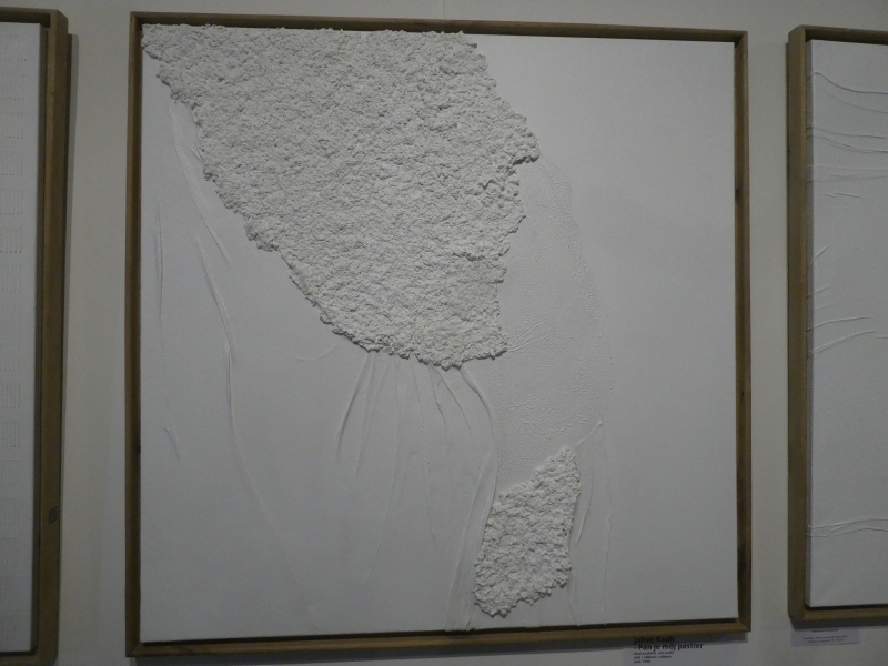 Michaela Paštrnáková. Vystavuje diela z tých najlepších, s ktorými som sa stretol. Biele v bielom, či na bielom. Brailovo písmo, sila minimalizmu, duša v obraze, a Starý zákon. Kolekcia vystavených obrazov predstavi umelecký talent, ktorého nositeĺkou táto umelkyňa nesporne je.