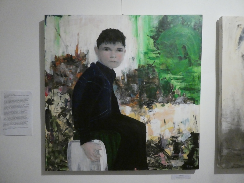 Jana Bírová a jej chlapec na stoličke obklopený neurčitými, no zaujímavými rozmermi zelenej a citlivo volených farebných skrumáží. Hĺadi na nás, na svet. Neurčito, prekvapene, so záujmom? Veĺmi pôsobivý autorkin obraz kompozične príťažlivý s bohatým obsahom. Ten je v tvári mladosti, ktorá tak fascinuje.