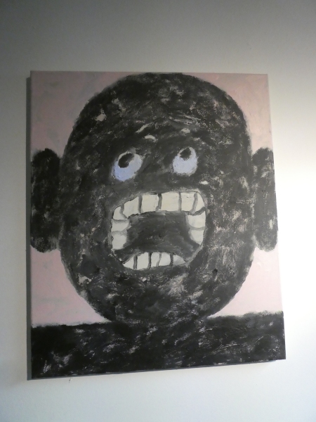 Portréty, zcela nejnovější Škutovy práce, často působí jako momentky zachycené těsně po nějakém vnitřním zlomu – v okamžiku, kdy se únava, stud, vztek nebo rezignace nedají dál skrývat. A neskryje je ani jejich majitel, protože obvázaná hlava chtě nechtě poutá pozornost. Právě ke smůle, která u něj trvá déle než jeden den.