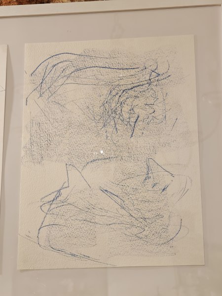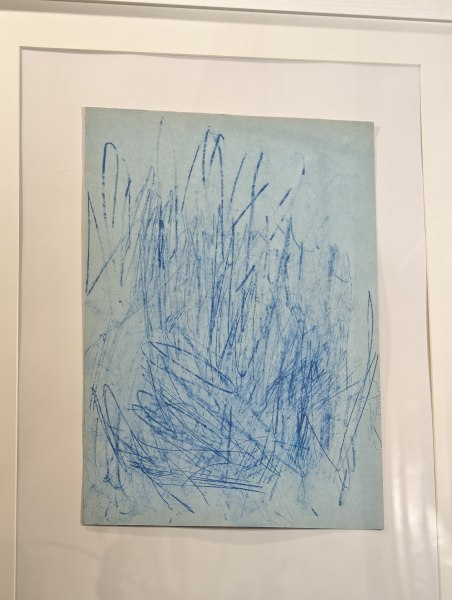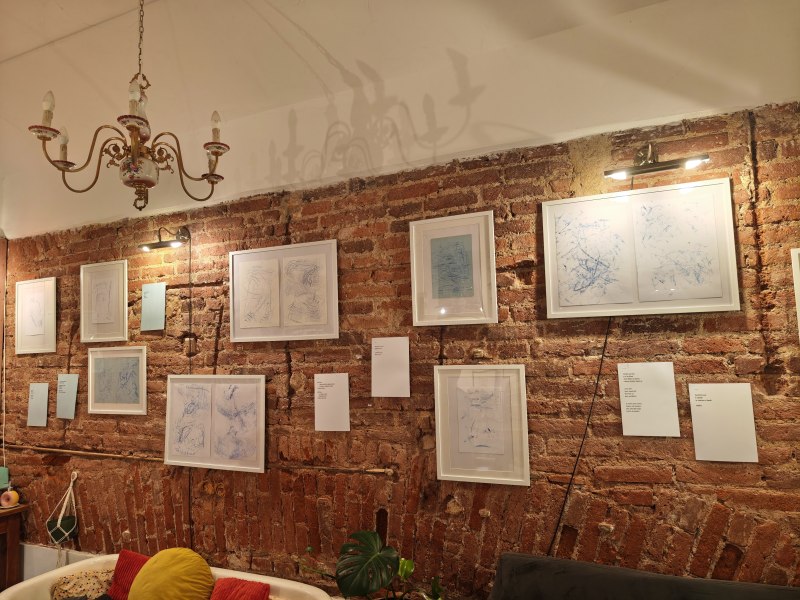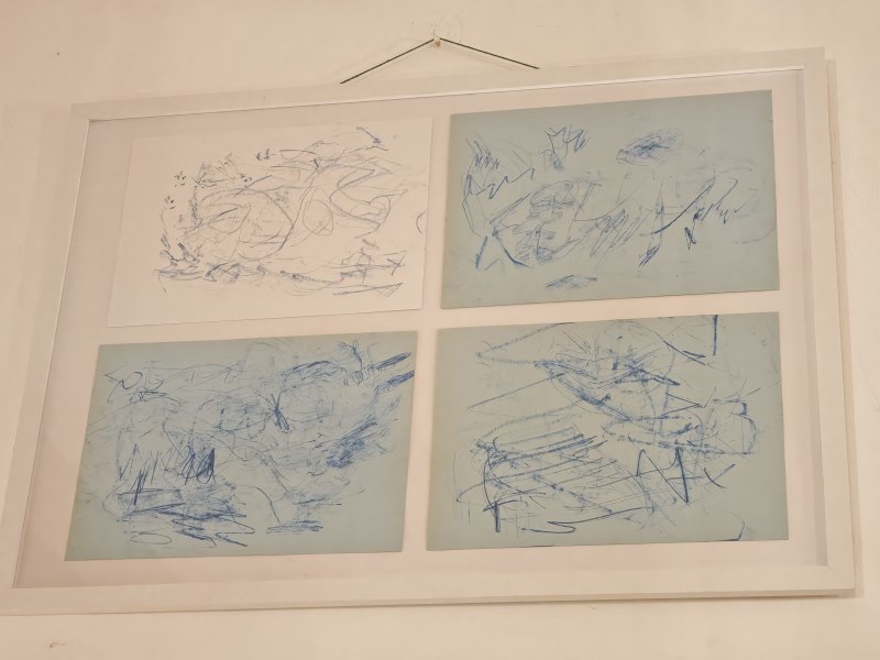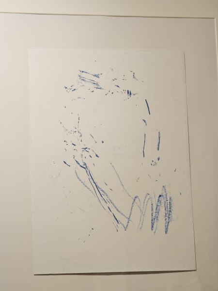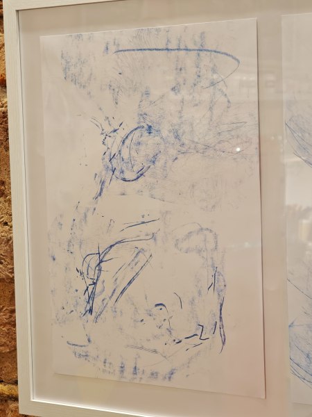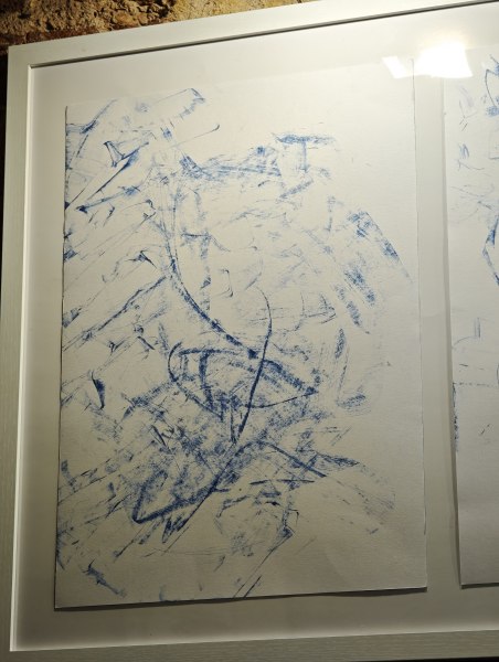 Předměty denní potřeby i bizarní objekty se tak stávají nástroji neplánovaného gesta a zároveň rituálního aktu, který reflektuje vnitřní konflikty, paměť i potlačené obsahy. Modrý pigment funguje jako stopa koncentrace i rozpuštění, zaváhání i soustředění. Série prací zachycuje proces, v němž se kresba mění v záznam tichého, ale intenzivního přetlaku: umění tak zprostředkovává stabilizaci i narušení zároveň.