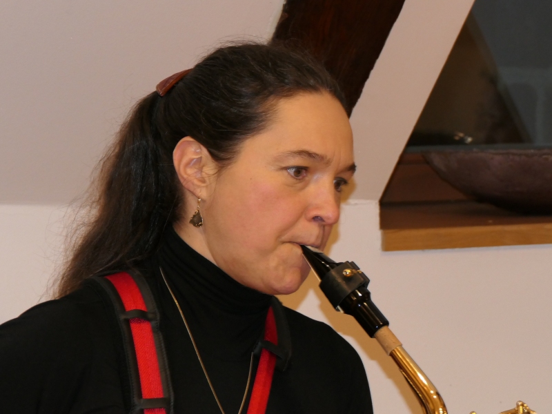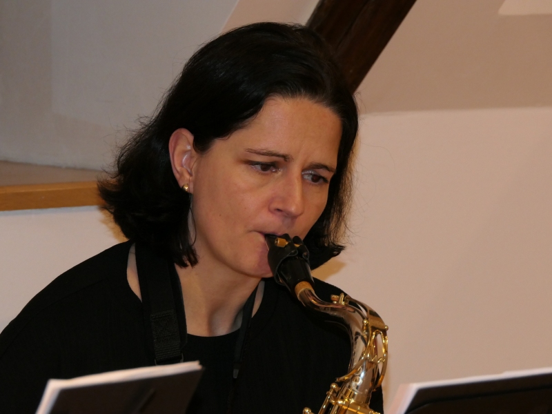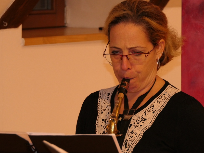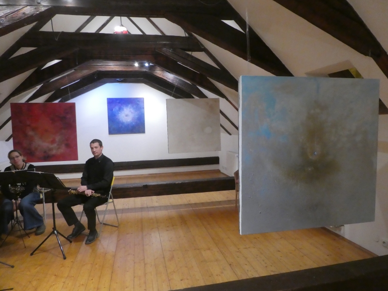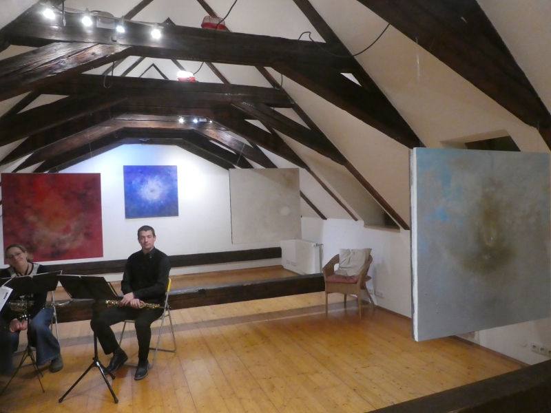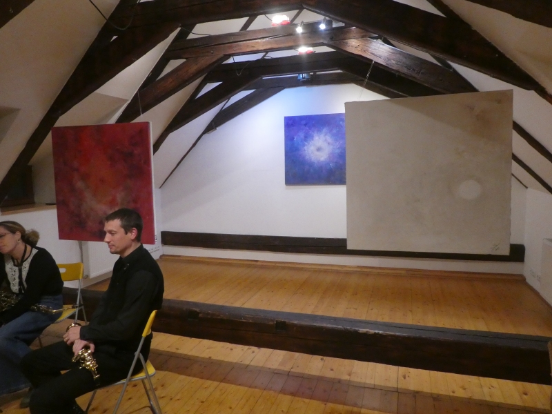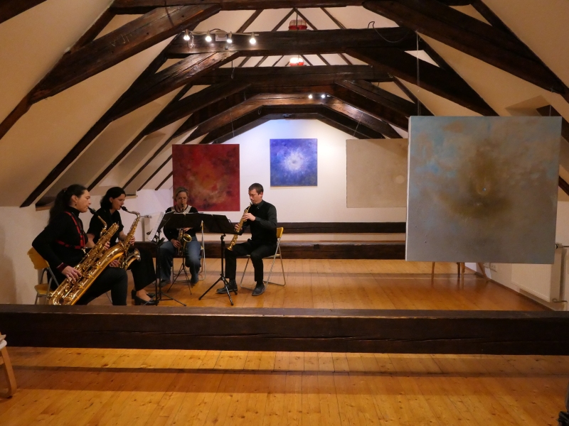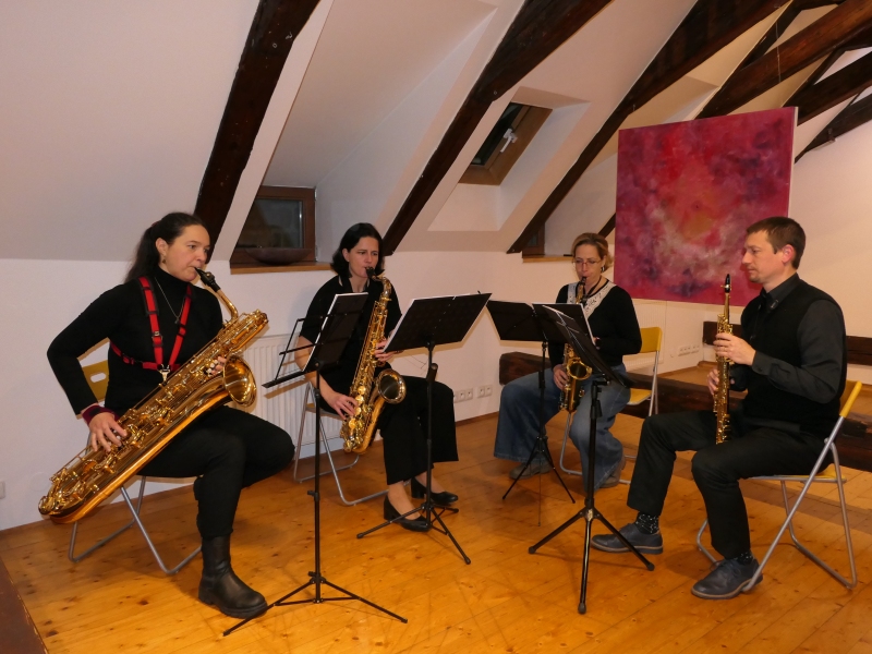 Během vernisáže zazněla hudba Saxofonového kvarteta z Chýně.