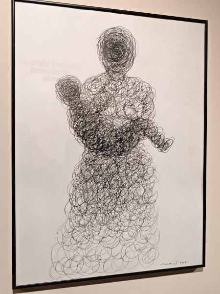 Základní principy její tvorby stojí na schopnosti abstrahovat lidskou figuru, aniž by ztratila emocionální podstatu, a na neustálém dialogu mezi tradicí a současností, materiálem a gestem, archetypem a osobní zkušeností. Tematická retrospektivní sonda Madonna mia, zahrnující práce od 60. let po naprostou současnost, představuje nejen průřez autorčiným přístupem k motivu madony, ale také osobní výpověď o ženské zkušenosti a mezilidských vztazích. Kurátorem výstavy je Radek Wohlmuth.