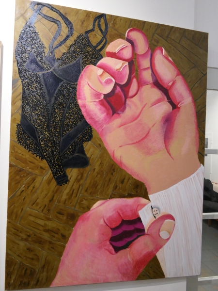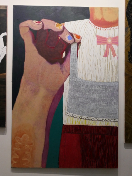 Autorčin de/formovaný rukopis je nezvykle syrový. Není to ale estetická manýra, spíš prostředek, jak zachytit psychickou tenzi a nejednoznačnost vlastního prožívání. Expresivní barevnost nese silný emocionální náboj a funguje i jako významotvorný prvek, který zvýrazňuje zranitelnost, konflikty i tíhu skutečnosti. Motivy nelichotivých autoportrétů, odložených či polámaných dětských hraček a intimita spodního prádla definují osobní ikonografii jako něco, co bývá obvykle důsledně skryto.