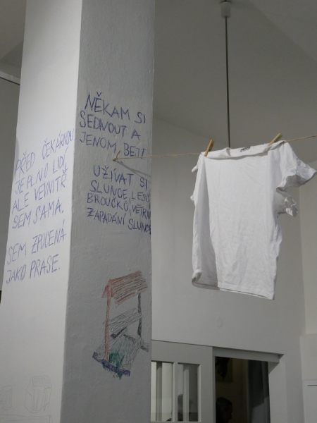 Výstava má místy až deníkový charakter. Klára Korbelová pracuje bez přikrašlování a pozitivní stylizace, s odvahou přiznat vlastní nejistoty i chvíle úlevné rezignace. To ještě podtrhuje její ručně psaný text na zdech galerie, který propojuje vizuální a verbální rovinu a zvyšuje celkovou intenzitu výpovědi. Výsledkem je kompaktní, emocionálně nabitá zpráva o hledání a definování sebe sama v prostoru mezi hrou a neustále doléhající realitou všedního dne.