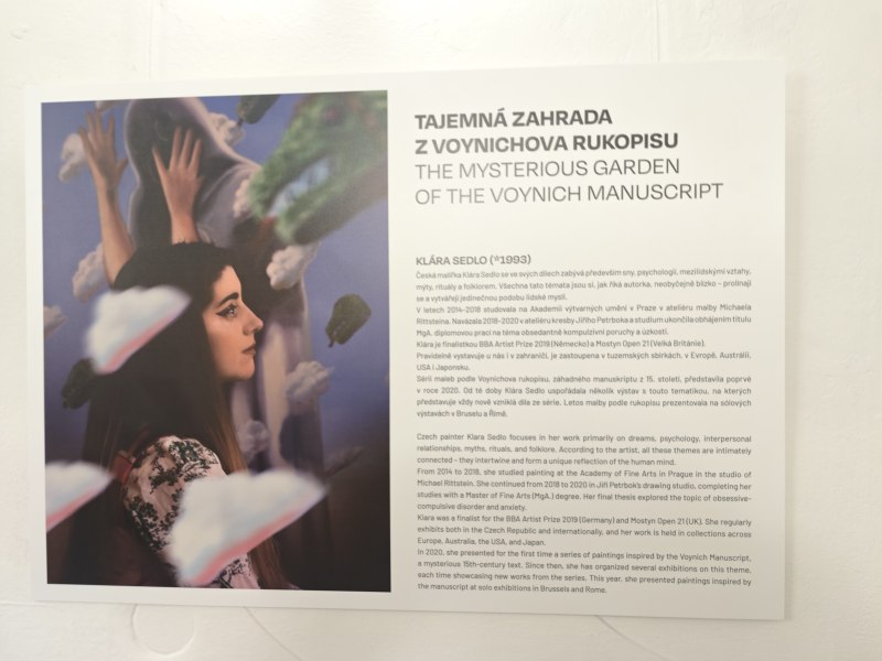 Do 30. 11. 2025 je v Klášteře minoritů u Sv. Jakuba, Malá Štupartská 635, Praha 1, přístupná velmi zajímavá a krásná výstava známé malířky Kláry Sedlo: Tajemství Voynichova rukopisu.