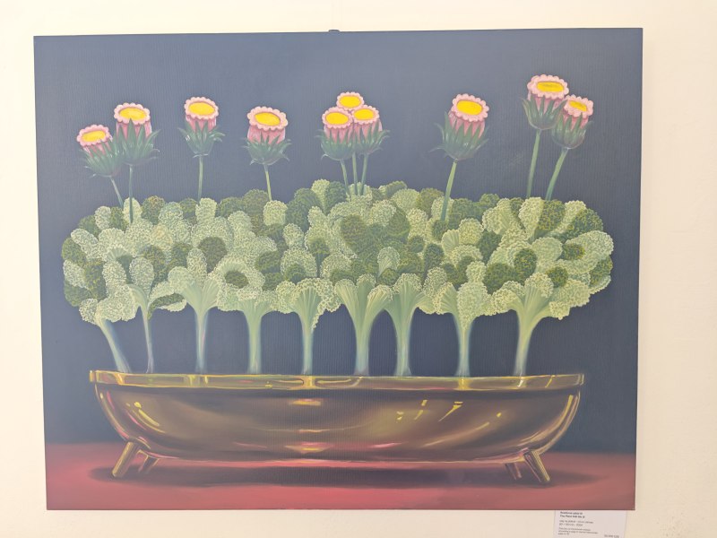 „Inspirace pro malby prapodivných květin vychází přímo z Voynichova rukopisu, konkrétně jeho botanické části, která obsahuje ilustrace neznámých rostlin. Překlápím nákresy záhadných květin (které doprovázejí dodnes nerozluštěný text) do realistické malby, jejíž forma má nádech barokních květinových zátiší.
