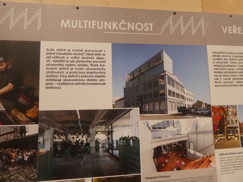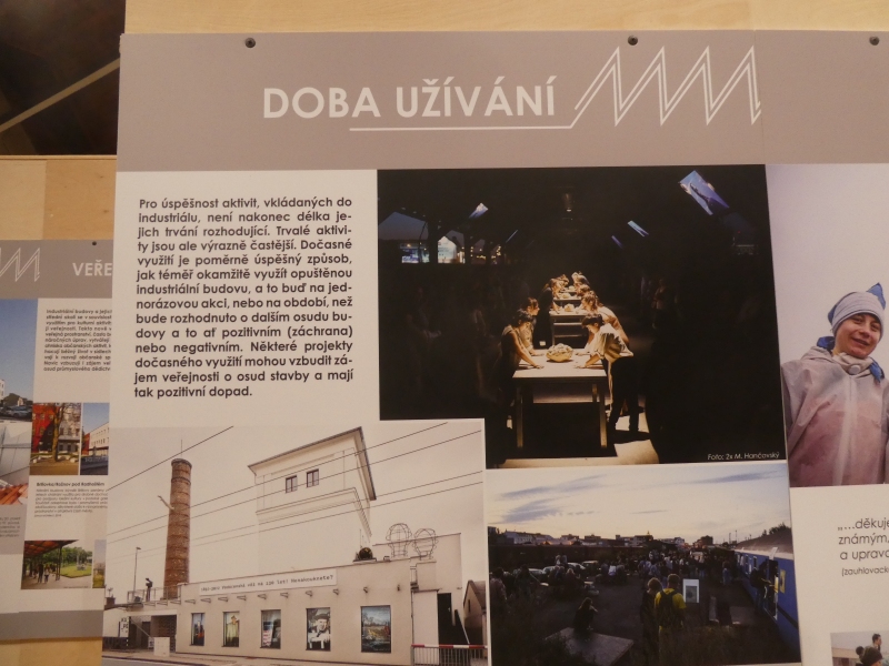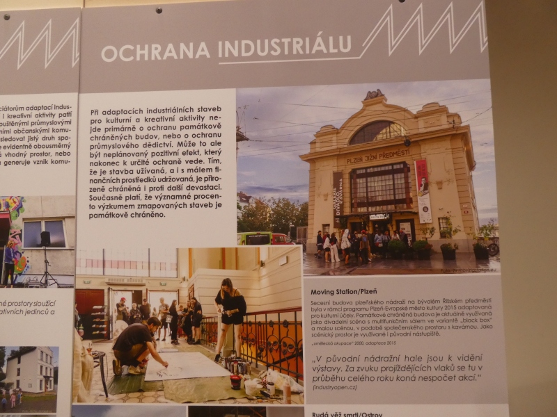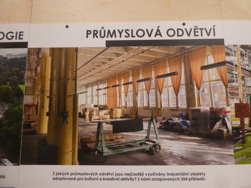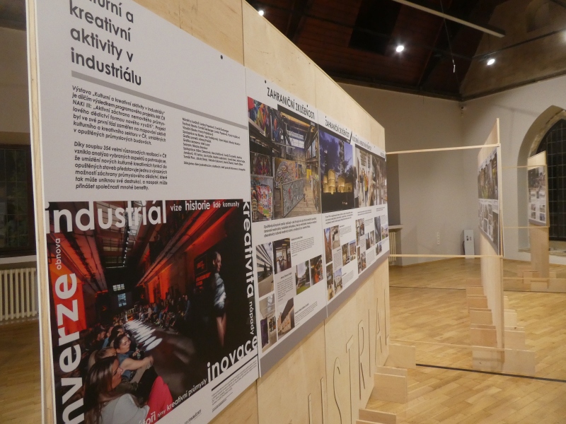 Výstava Kulturní a kreativní aktivity v industriálu představuje výsledek mapování kulturních a kreativních průmyslů a souvisejících aktivit v České republice využívajících opuštěné industriální stavby. Zahrnuje soupis 354 velmi různorodých realizací konverzí v ČR a analýzu jejich vybraných aspektů. Celý projekt zastřešuje motto, že nově vložené kulturní a kreativní aktivity do opuštěných industriálních staveb výrazně napomáhají záchraně průmyslového dědictví, které tak může uniknou své destrukci, a naopak může přinášet společnosti mnohé benefity.