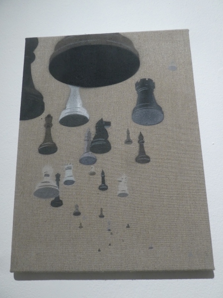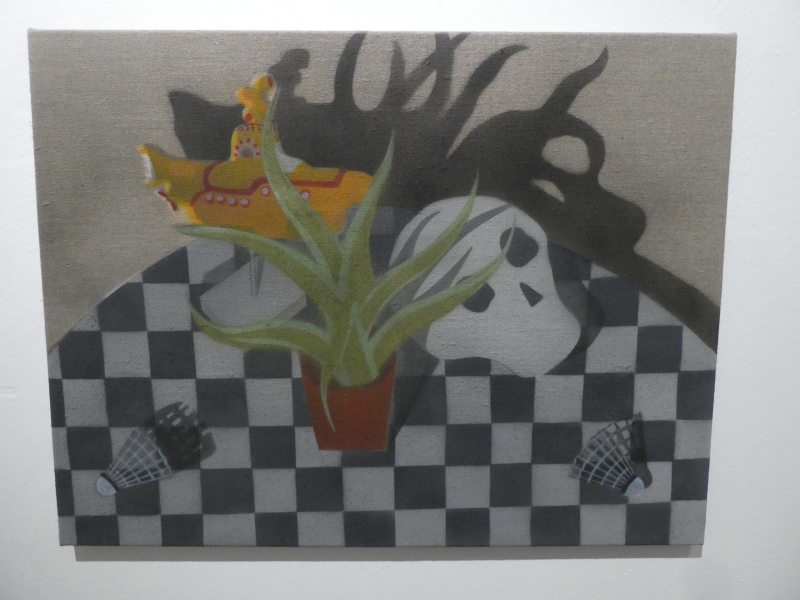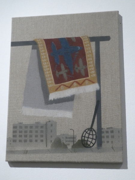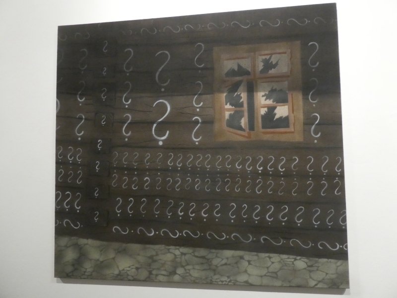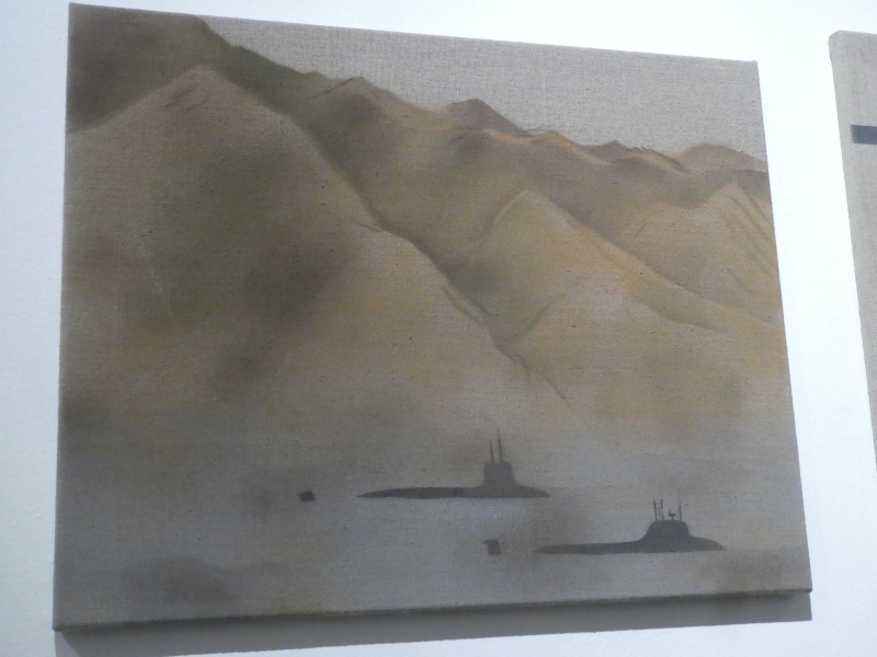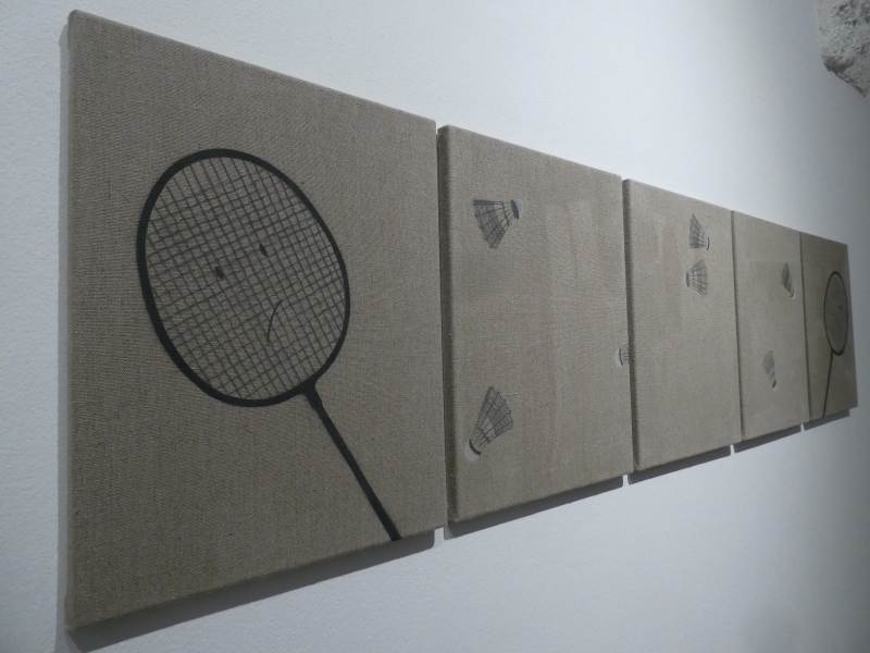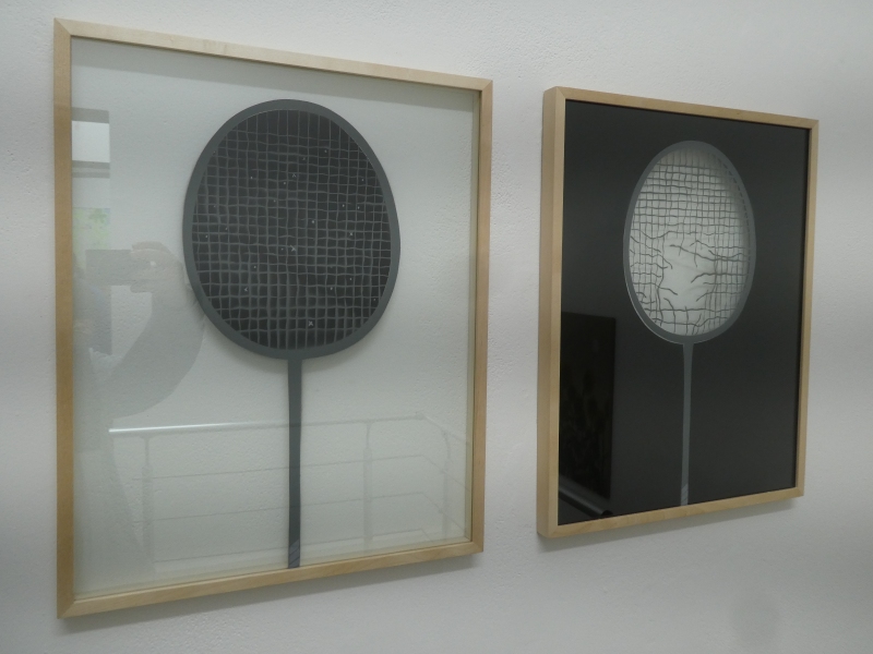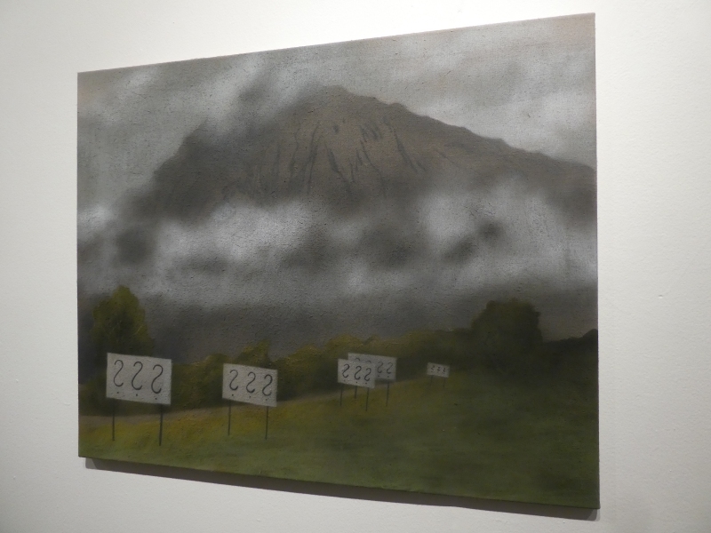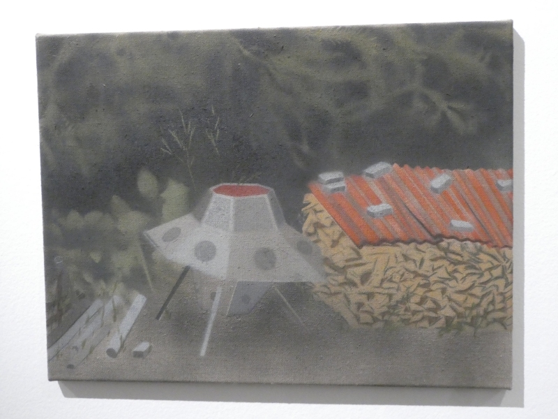 Výstava Něco je ve vzduchu představuje návrat Ladislavy Gažiové k malbě, která se po letech znovu stává jejím hlavním vyjadřovacím prostředkem. „K malbě jsem se vrátila kvůli jazyku, bez kterého jsem se těžko vyjadřovala,“ říká autorka. Její nové obrazy působí stroze, mají téměř architektonickou skladbu a tlumenou barevnost, některé vznikly výhradně v odstínech šedi. Motivy sahají od žánrových výjevů, jako jsou krajiny či vanitas, až po konstruované scény založené na symbolech a znacích. Opakujícím se prvkem je badmintonový košíček, který v sousedství vojenských ponorek a letadel získává nový význam a proměňuje se v hypotetickou munici. Prostřednictvím tohoto posunu Gažiová otevírá širší společenská a politická témata. Zároveň navazuje na odkaz Júliuse Kollera a rozvíjí jeho ikonický symbol otazníku i motiv U.F.O., které připomínají potřebu kritického odstupu v době informačního přesycení.