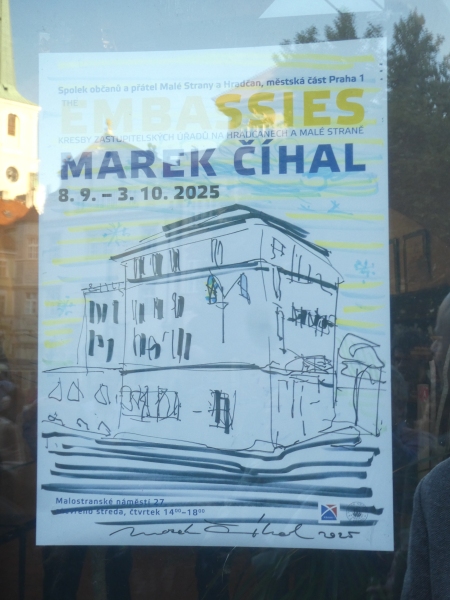 Do 30. 9. 2025 běží ve Spolku občanů a přátel Malé Strany a Hradčan, Malostranské náměstí 27, Praha 1, velmi zajímavá výstava kreseb Marka Číhala: Embassies.