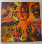 „V Kongu je jakoby vše zesílené. Vše je více nahlas a dravější. Řeka je více řekou – její proud je silnější, kal zakalnější. Dav je víc davem – hlučnějším a bizarnějším. Les je hustší, zvuky lesa mnohem hlasitější a v noci je větší tma. Všude je více života i smrti. Mýty jsou přítomnější. Nadpřirozené se zdá být blíže. Po Kongu jsem se proto snažil zesílit řeč malby tak, aby se stala jakýmsi svébytným živlem. Uvědomil jsem si tu také mnohem více, jak moc lidstvo planetě škodí. Nenažranost nás zahubí… Viděli jsme hořet lesy, cítili všechen ten žár a dým, slyšeli dunivé zvuky bezpočtu praskajících větví a padajících stromů. Ta destruktivní síla člověka děsí i fascinuje. Energie požáru stoupá spolu s dýmem k nebi jako levitující duše spálených tvorů. Popel se vrací zemi. Ještě jsem cosi viděl v očích slona, ve zvucích pralesa, v řevu a gestech šimpanzů. Snad mi časem dojde co a namaluji to také…”