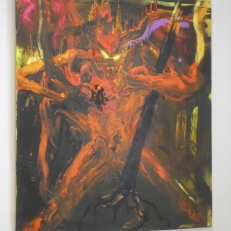 „V Kongu je jakoby vše zesílené. Vše je více nahlas a dravější. Řeka je více řekou – její proud je silnější, kal zakalnější. Dav je víc davem – hlučnějším a bizarnějším. Les je hustší, zvuky lesa mnohem hlasitější a v noci je větší tma. Všude je více života i smrti. Mýty jsou přítomnější. Nadpřirozené se zdá být blíže. Po Kongu jsem se proto snažil zesílit řeč malby tak, aby se stala jakýmsi svébytným živlem. Uvědomil jsem si tu také mnohem více, jak moc lidstvo planetě škodí. Nenažranost nás zahubí… Viděli jsme hořet lesy, cítili všechen ten žár a dým, slyšeli dunivé zvuky bezpočtu praskajících větví a padajících stromů. Ta destruktivní síla člověka děsí i fascinuje. Energie požáru stoupá spolu s dýmem k nebi jako levitující duše spálených tvorů. Popel se vrací zemi. Ještě jsem cosi viděl v očích slona, ve zvucích pralesa, v řevu a gestech šimpanzů. Snad mi časem dojde co a namaluji to také…”