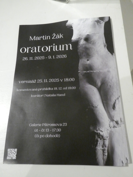 Do 9. 1. 2026 je v Galerii Pštrossova 23, Praha 1, přístupná velmi zajímavá a krásná výstava Martina Žáka: Oratorium.