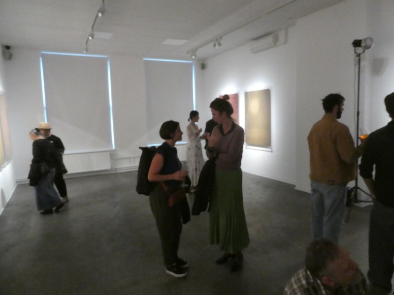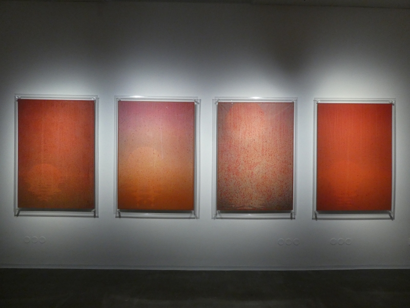 Těžištěm výstavy Afterimage je série sedmnácti kreseb na barveném papíře, které vznikaly v období mezi jarem 2024 a létem 2025. Doplňuje je velkoformátová černobílá kresba s realisticky zobrazeným motivem konce světa a digitální tisk na vstupní stěně do galerie, který je zvětšeninou jedné strany z Michaelova skicáku. Tento výběr dobře ukazuje jeho schopnost obsáhnout jak figurativním realismus, tak expresivní abstrakci. Ať už pracuje s jakýmkoliv médiem (nebo třeba jen poklízí nářadí v ateliéru), klade důraz na precizní řemeslnou práci a technologickou přesnost.