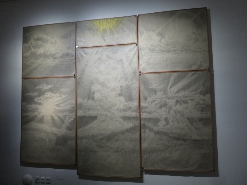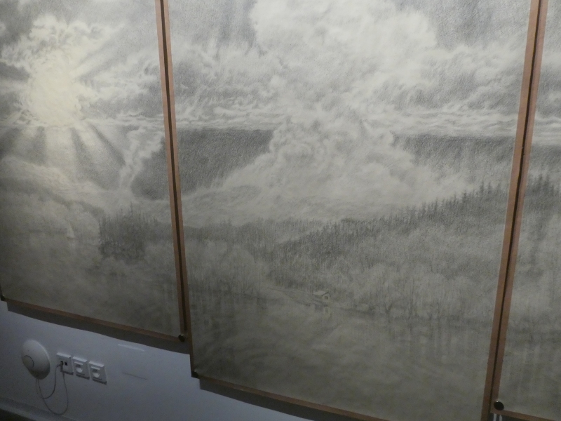 Na výstavě Afterimage je také zastoupena jedna z černobílých kreseb, které předcházely barevným obrazům. Vidíme na ní idylickou krajinu s plachetnicí poklidně plující po jezeře, zatímco na nebi začíná ničivá bouře a na obzoru se z mračen formuje démonický posel zkázy. Všechny Noskovy „přípravné” černobílé kresby explicitně zobrazují blížící se apokalypsu. Často se na nich objevuje trosečník držící se kusu prámu. Tonoucí postava ví, že se blíží její smrt, zároveň pozoruje blížící se meteorit a uvědomuje si, že konec se netýká pouze jí, ale také veškerého pozemského života (ano, i takové výjevy mohou vytanout v únavou zjitřené imaginaci čerstvého rodiče!).