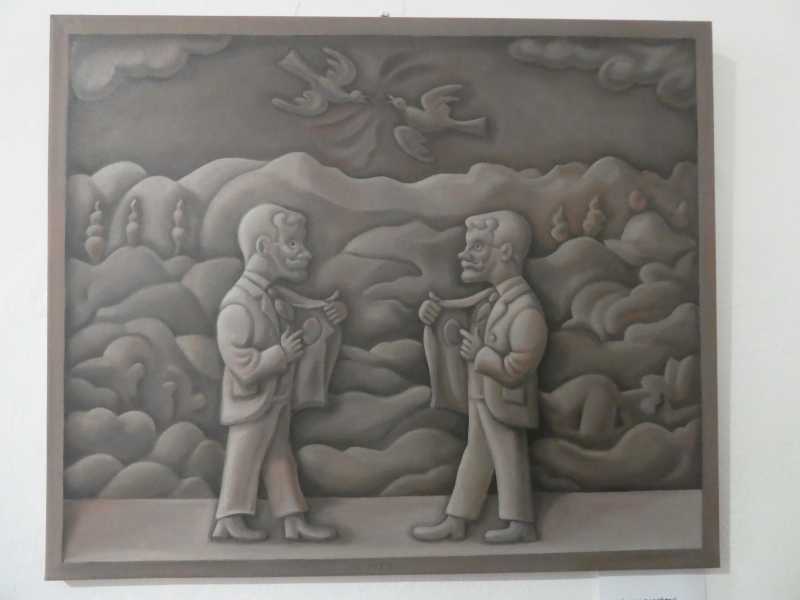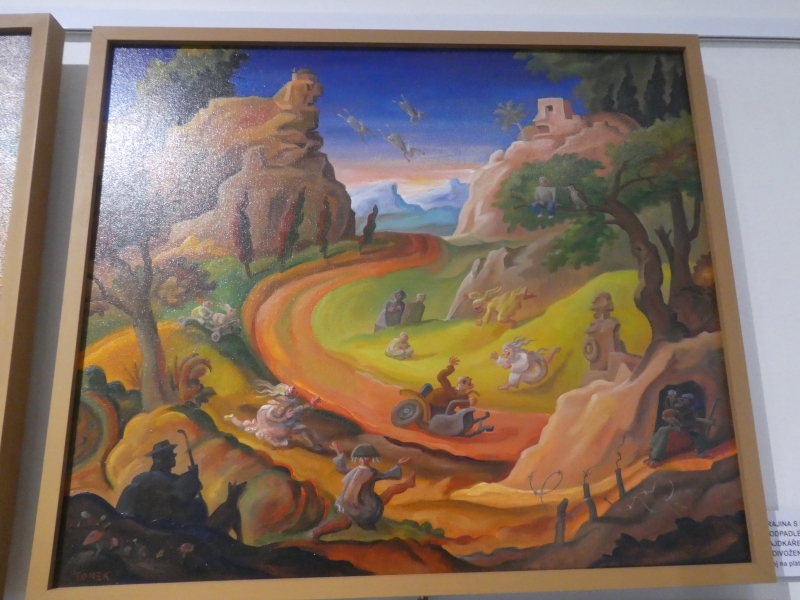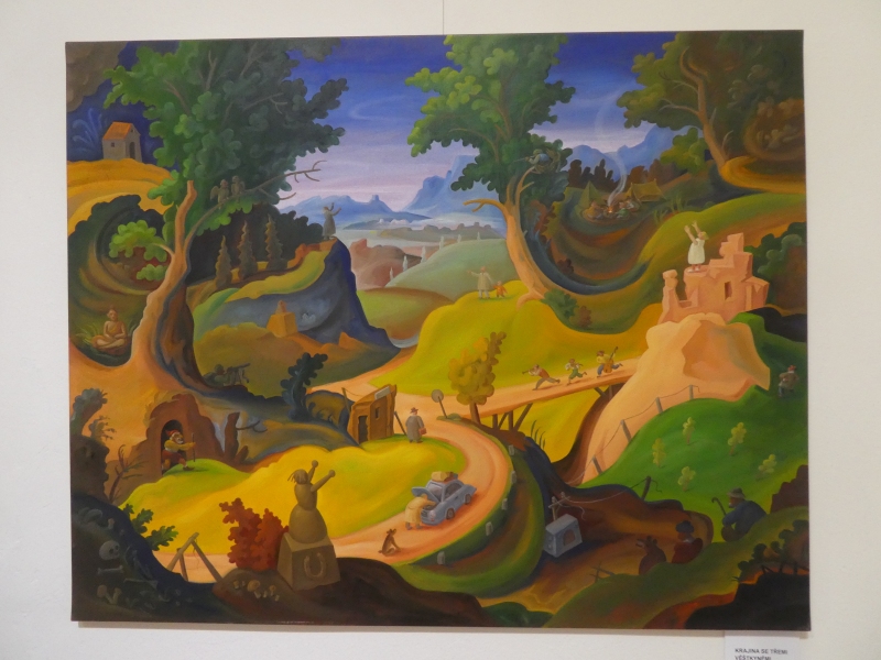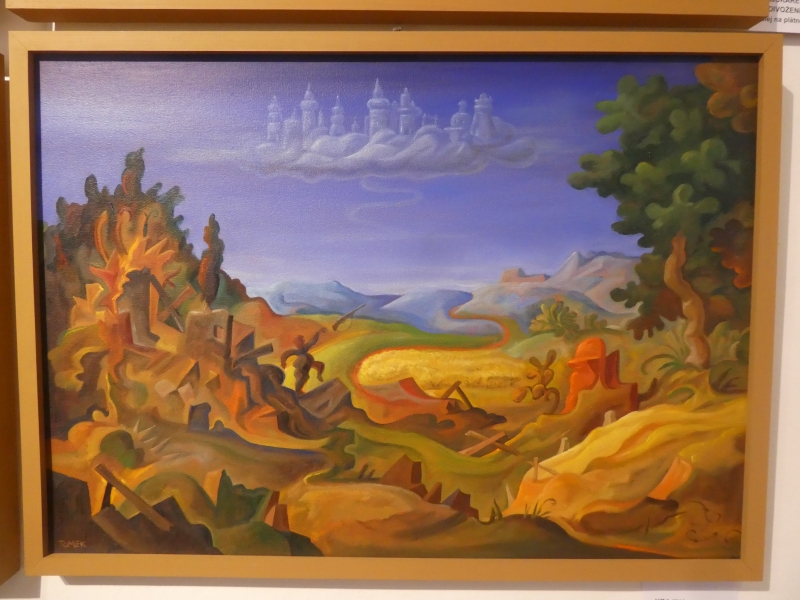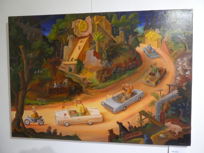 Výstava obrazů Michala Tomka, který stojí mimo současné módní trendy. Ve svých obrazech klasickou formou malby pod povrchem malířské grotesky zobrazuje také současné děje a aktuální problémy. Jeho obrazy jsou zábavné i varující.