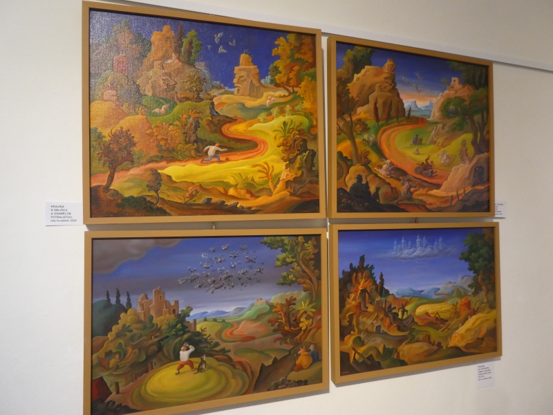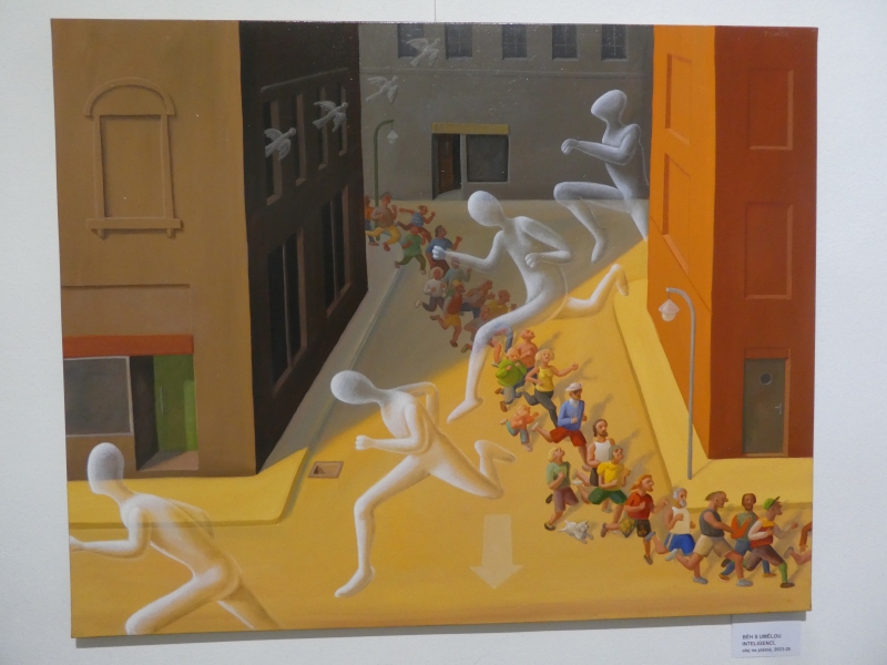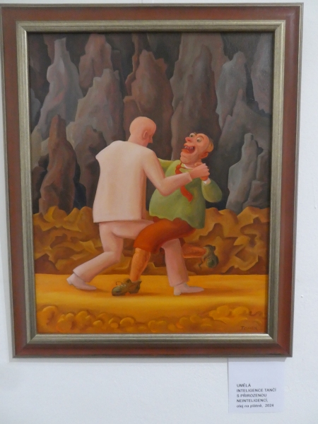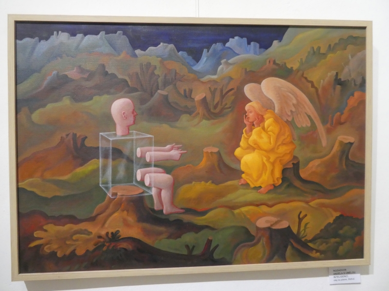 Do 3. 5. 2026 je v Galerii Novoměstské radnice, Karlovo nám. 1/23, Praha 2 (vstup z Vodičkovy), přístupná velmi zajímavá, zábavná a chytrá výstava Michala Tomka: Rozhovor anděla s umělou inteligencí a jiné obrazy.
