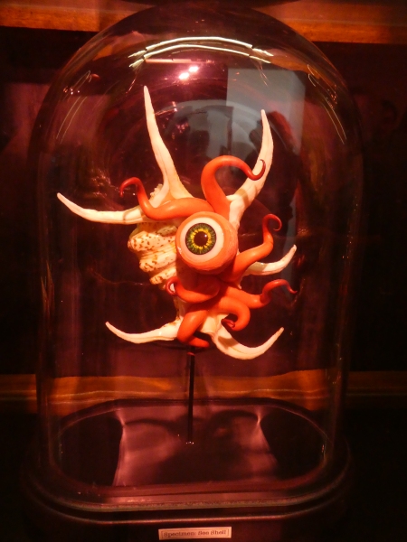 Oko coby metafora vůle k moci Vidoucího, o němž snil Arthur Rimbaud ve svých dopisech, se stává svědkem všech forem lásky, utrpení i šílenství: „Básník se stává vidoucím dlouhým, nesmírným a vědomým rozrušováním všech smyslů. […] Jsou to nevýslovná muka, při nichž potřebuje veškerou svou víru, veškerou nadlidskou sílu, kdy se stává mezi všemi velkým churavcem, velkým zločincem, velkým proklatcem“. Tyto morózní ideje jsou pak vyvažovány hravými jazykovými hříčkami v názvech autorčiných děl („Cacteye“, „See Shell“, „Fungeye“, „Carseenisation“ atd.) i jejich pitoreskně drobnými rozměry, takže si v jistých chvílích nejsme jistí, zda jsme v pitevně nebo v hračkářství. Nicméně jak lakonicky podotknul básník, J. H. Krchovský: „Vždyť k pořádnému utrpení / je třeba trochu sladkých scén!“ Tak či tak, výstava nám ukáže, že ten největší kabinet kuriozit si nosíme sami ve své hlavě…