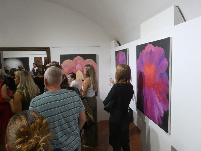 K vidění bude poslední tvorba Petra Hampla. Tématem jeho obrazů jsou květy a jejich rubínová barevnost. Soubor těchto obrazů vznikal v posledních letech. Jedná se o klasické téma Memento mori. Květ je v tomto případě metaforou času, lásky, rození a smrti. Námět se zrodil na hřbitově. „Několikrát jsem poslední dobou restauroval hřbitovní mozaiky. Trávil jsem na hřbitově dost času a všímal jsem si výrazně barevných umělých květin na hrobech. Tato představa mně uvízla v mysli a postupně se z ní zrodily tyto obrazy.“ Říká Petr Hampl. Některé rubínové květy mají až kosmický rozměr – Konstrukce rubínového květu, Rosa Coeli, zároveň připomínají tělesné orgány, tkáně, nebo sliznici. Pronikají pod povrch pokožky a otevírají nový vesmír mikrokosmu.
