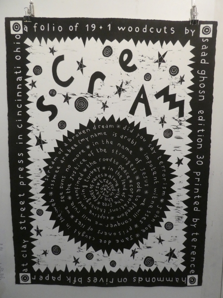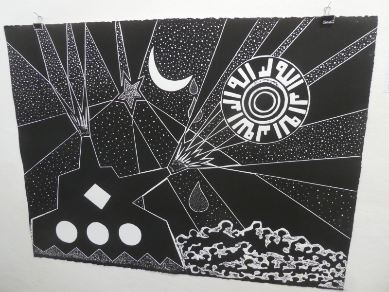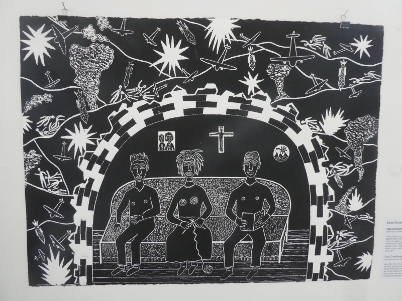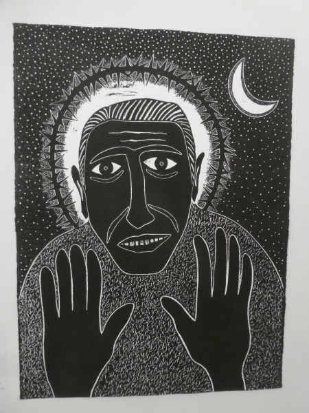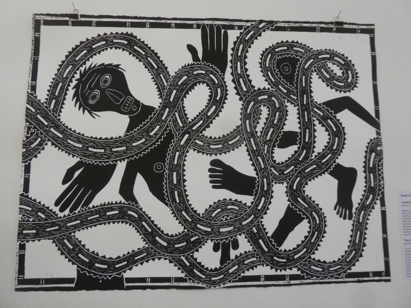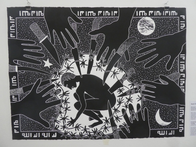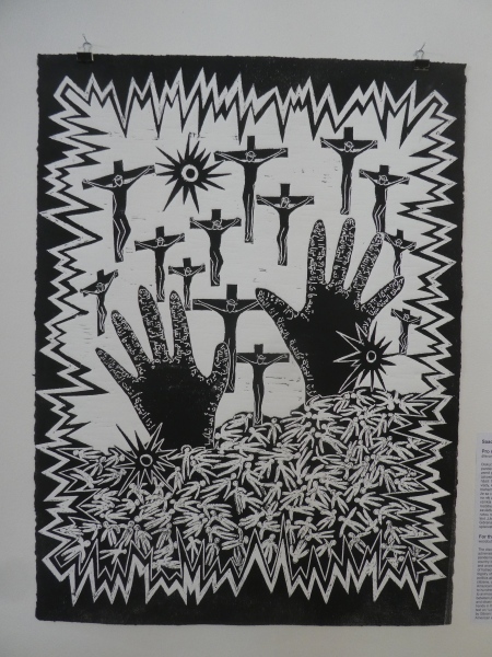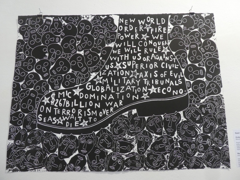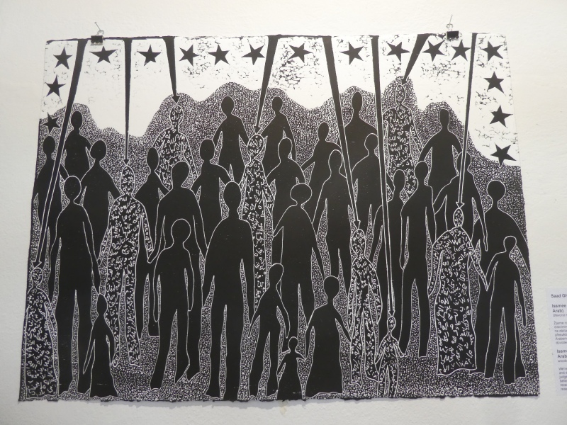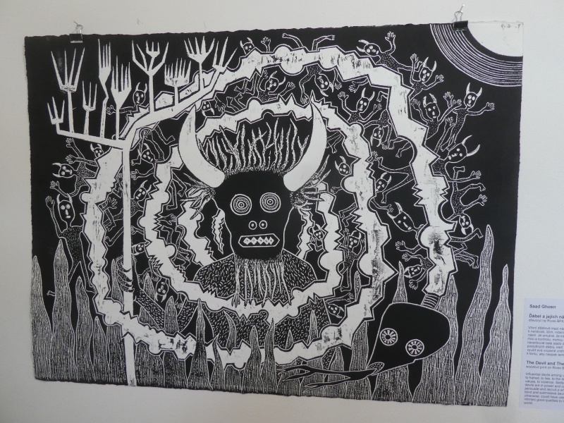 Saad Ghosn na výstavě představuje dřevoryty na téma sociální spravedlnost.