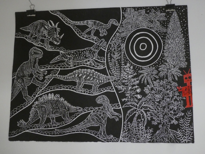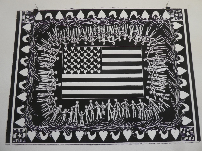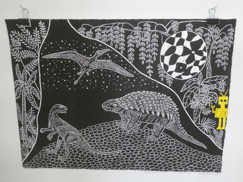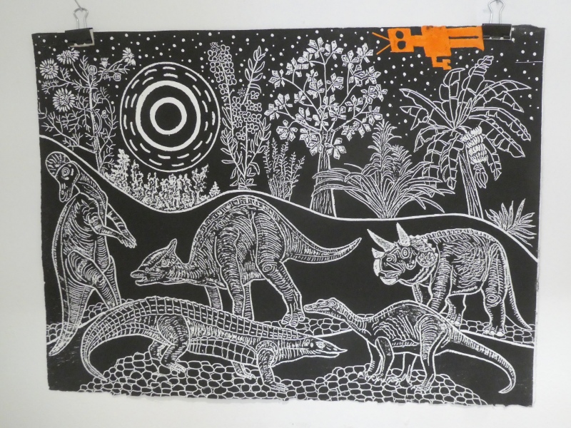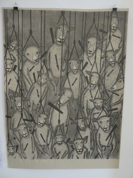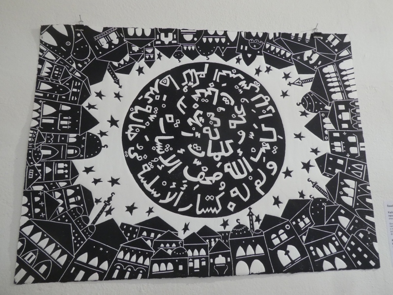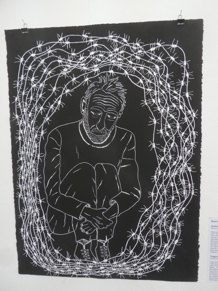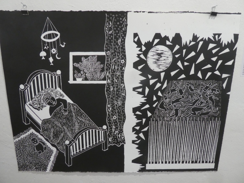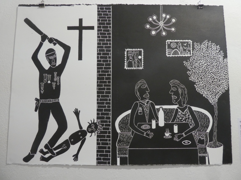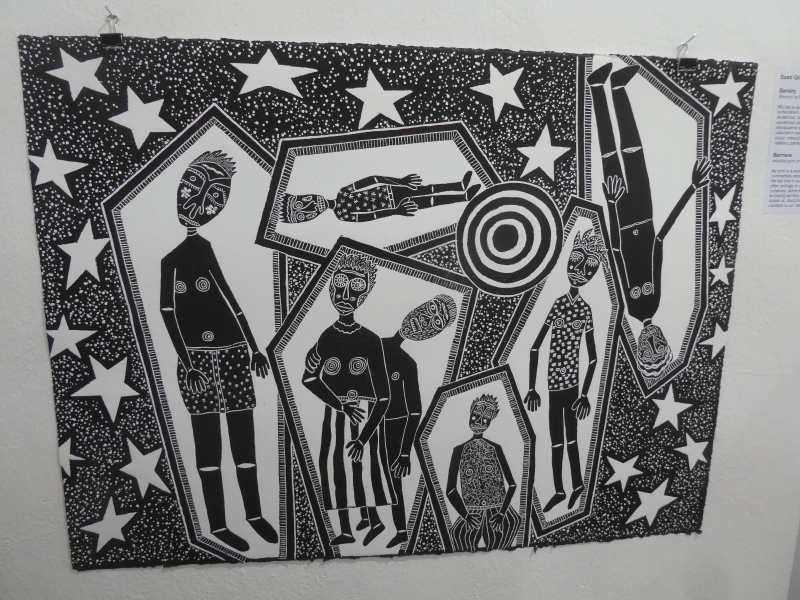 Saad Ghosn na výstavě představuje dřevoryty na téma sociální spravedlnost.