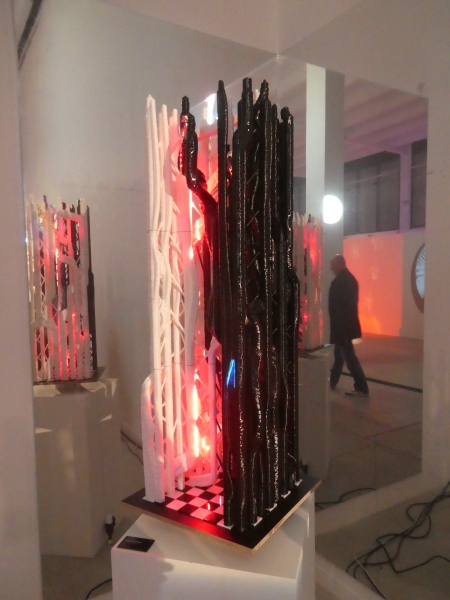 Různé polohy technologicky spoluřízené proměny rozvíjí kolektivní výstava Situace tří těles, jež představuje díla tří umělců, které pojí nejen společný výrazový prostředek (nové technologie), ale i výchozí bod jejich umělecké dráhy – klubová audiovizuální scéna. Jan Hladil, Jan Slanina a Jan Poš si cestu k výtvarnému umění nalezli díky eventovému prostředí, do něhož vstupovali primárně za užití umělého světla. To posléze mutovalo v různé podoby jejich individuální umělecké praxe. Hladil na výstavě představí svou dlouhodobou fascinaci laserovým paprskem a propletenou formu Šachové sochy, jež roste do prostoru a problematizuje běžné tvarosloví. Slaninu zastoupí díla kultivující určitou mutaci figur a času, jehož tradiční lineární pojetí nechává slévat v technologiemi upravenou asambláž. Poš poté prostor galerie zaplní fragmenty hexagonu a nestabilními objekty pramenícími z počítačové simulace, která se materializuje formou komplexních tvarů.