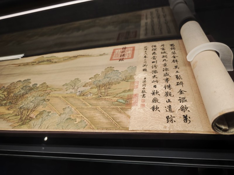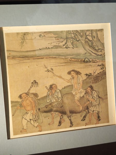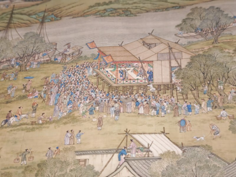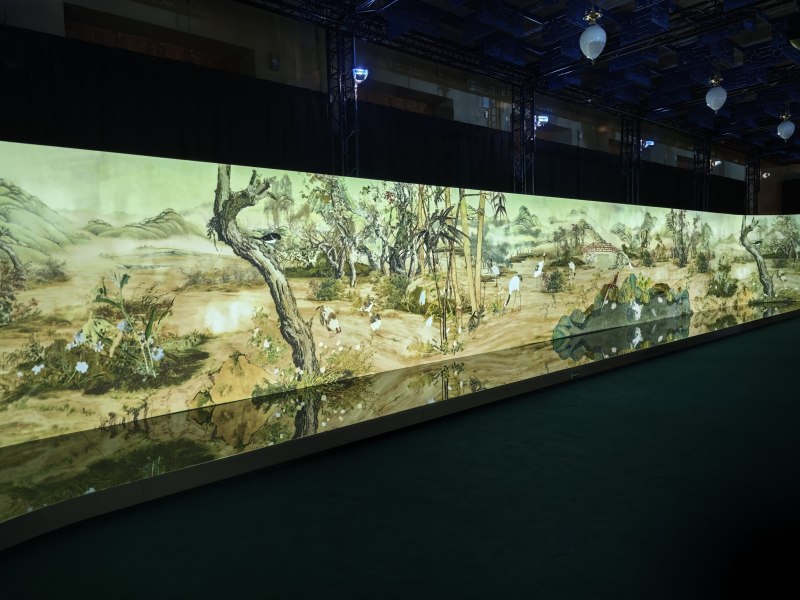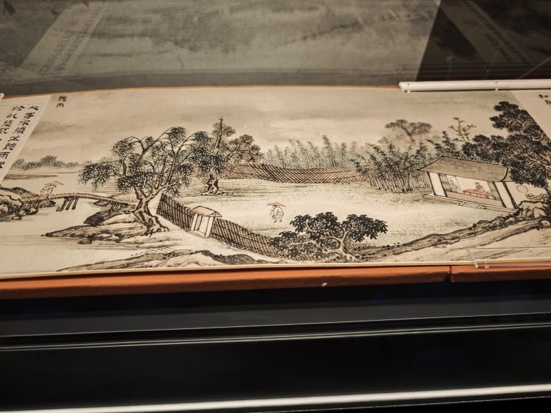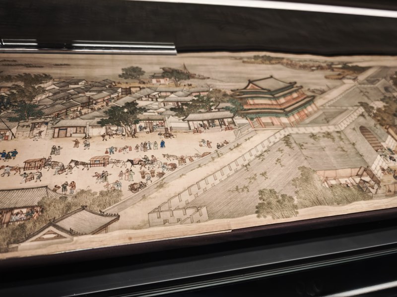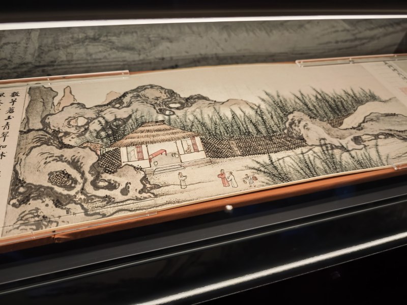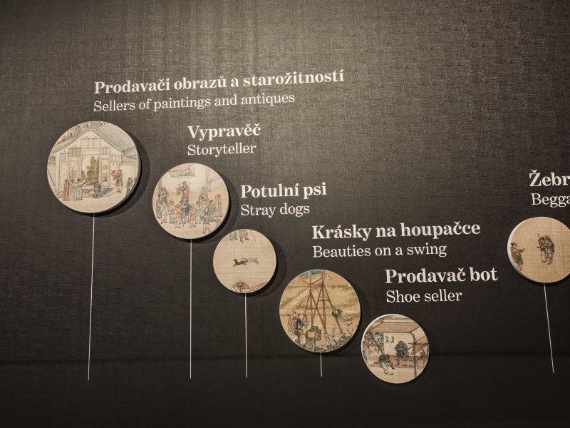 Doslova dechberoucím dojmem působí ve druhém výstavním sále dvojice svitků dlouhých 14 a 12 metrů. Téma elegantní život učence literáta ve staré Číně zachycuje svitek s názvem Vznešené zábavy ve stínu stromů ze 16. století, který doplňuje psací náčiní, takzvané Poklady studovny. Každodenní život zosobňuje svitek Cesta po řece o svátku čistoty a jasu. Svitek vás vtáhne do tehdejšího každodenního života staré Číny, prostřednictvím velkoformátové rozpohybované animace můžete doslova procházet městem a nechat se pohltit atmosférou tehdejšího městského ruchu. Setkejte se s trhovci prodávajícími ženšen nebo se vznešenými dívkami, které zvědavě pozorují z houpačky dění za zdmi zahrady, zastavte se u duhového mostu, kde proudí lodě, lidé i zboží.
