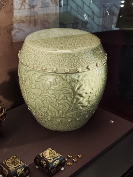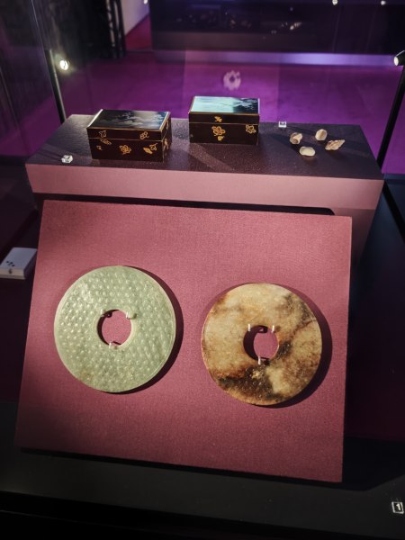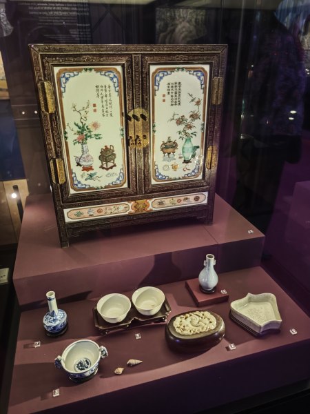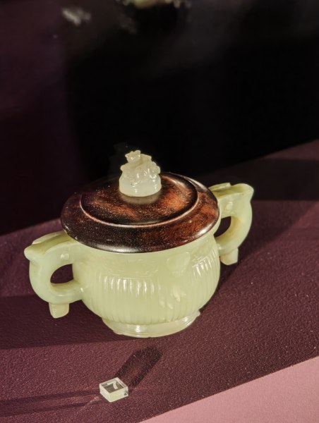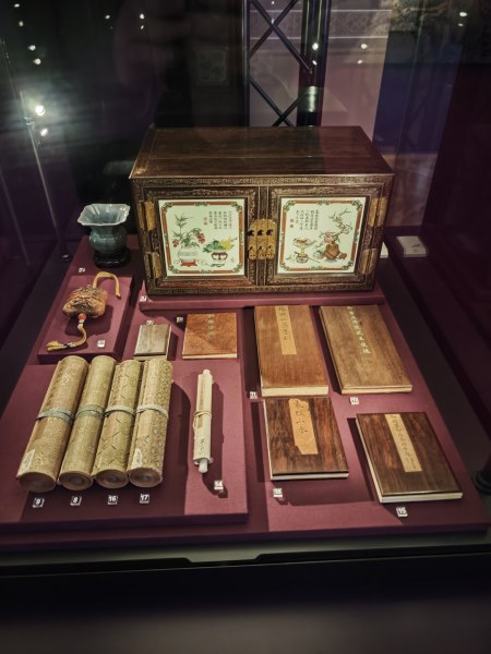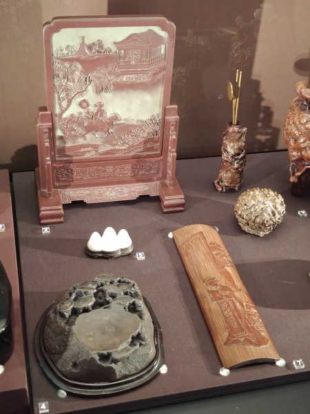 Mezi desítkami nádherných artefaktů vynikají dvoupatrová skříňka z červeného santalu s porcelánovými deskami, nefritové disky, lukostřelecké prsteny, sošky, lahvičky na šňupací tabák a mnoho dalších překrásných předmětů. Některé exponáty představují starobylé legendy, třeba jako nefritová plastika kapra, který překoná divoké říční peřeje a promění se v draka. Jedná se o symbol životní cesty učence, který po složení náročných zkoušek může dosáhnout vysokého postavení – stát se ministrem nebo císařovým poradcem.