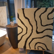 Součástí výstavy jsou také díla se zenovou tématikou, inspirovaná symbolikou ensó — kruhu, který v japonské kaligrafii reprezentuje osvícení, sílu, eleganci i prázdnotu. Ensó bývá často kreslen jediným tahem a zůstává záměrně otevřený, aby symbolizoval nedokonalost jako přirozenou součást života, prostor pro růst i neustálý pohyb bytí. Je výrazem chvíle, kdy mysl mlčí a tvoří čistě skrze přítomný okamžik.