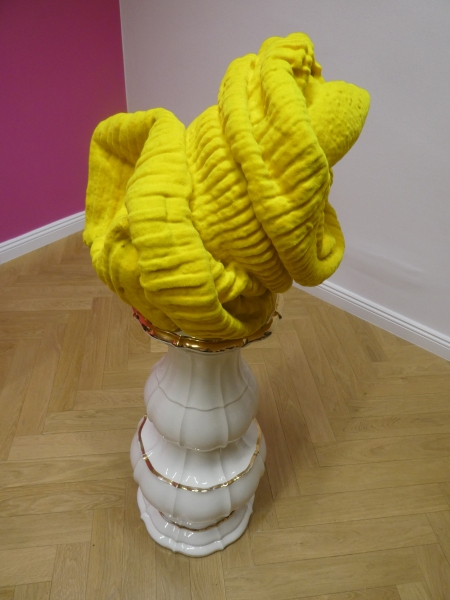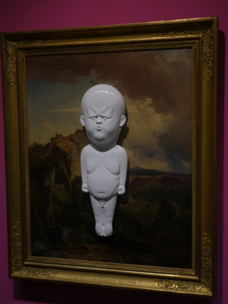 A tak sledujeme, jak se historická krajinomalba z 19. století od neznámého autora stává pozadím pro zploštělého ikonického Pičuse, který již dávno přestal být jen provokativním symbolem a stal se významnou značkou. Na principu absurdního kontrastu funguje i srolovaná ponožka mého otce – bezcenný každodenní artefakt spojený s osobními vzpomínkami, který se díky digitálnímu skenování, tisku v monumentální verzi a následnému umístění na honosný historický podstavec stává nejcennější památkou.