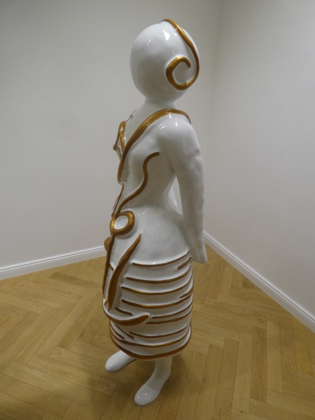 Ve své současné výstavě Viktor Frešo také rekonfiguruje svou vlastní minulost a své první tvůrčí impulsy. Pomocí umělé inteligence přesouvá své figurativní kresby z 90. let do trojrozměrného prostoru a transformuje je do hybridní ženské postavy s mírně dystopickým sci-fi vzhledem. Charakteristické principy seriality a reprodukce jsou patrné také v podobě odlitků dřevěného reliéfu rodinné chaty, který vytvořil, když mu bylo dvanáct let. U každé nové verze pozorujeme drobné posuny, chyby a materiálové změny. Opakování stejného motivu odhaluje proces, hovoří o čase a paměti objektu.