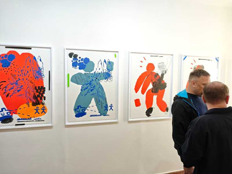 “Vladimir každé z těch nových děl vytvořil tady u nás v sítotiskové dílně Analog Bros, kterou jsme ostatně založili společně v roce 2012. Celý proces od začátku reflektoval způsob jeho tvorby. Stanovili jsme si základní myšlenku, kterou jsme za pochodu doplňovali. Jak přibývaly nápady, objevovaly se i nové postavy, barvy nebo motivy,” popisuje Jakub Stýblo, spoluzakladatel galerie Poster 44 a s ní spojené sítotiskové laboratoře Analog Bros.