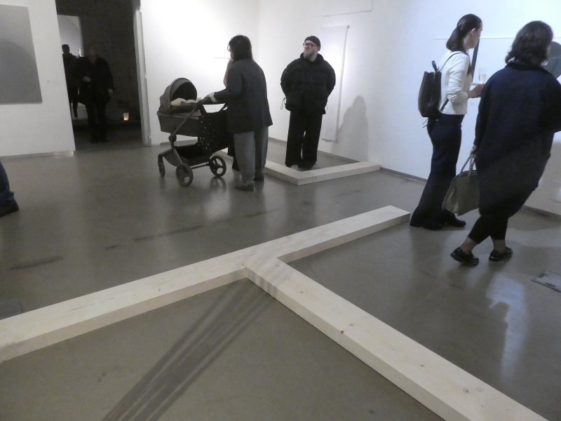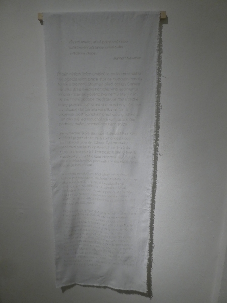 Kulturou, která má k redukci, duchovnímu přesahu a ubírání hmoty velmi blízko, je zen buddhismus. Minimalistické chrámy s akcentem na význam prázdného místa a koncentraci na meditativní vjemy jsou prostorem abstrakce par excellence. Na tento mentální obsah poukazuje architektura výstavy, která evokuje spoje podlahových trámů uvnitř zenového chrámu. Divák se může vydat trajektorií, která jej navádí k jednotlivým dílům. Pokud se však rozhodne pro vlastní cestu, má kdykoli možnost toto prostorové určení překročit.