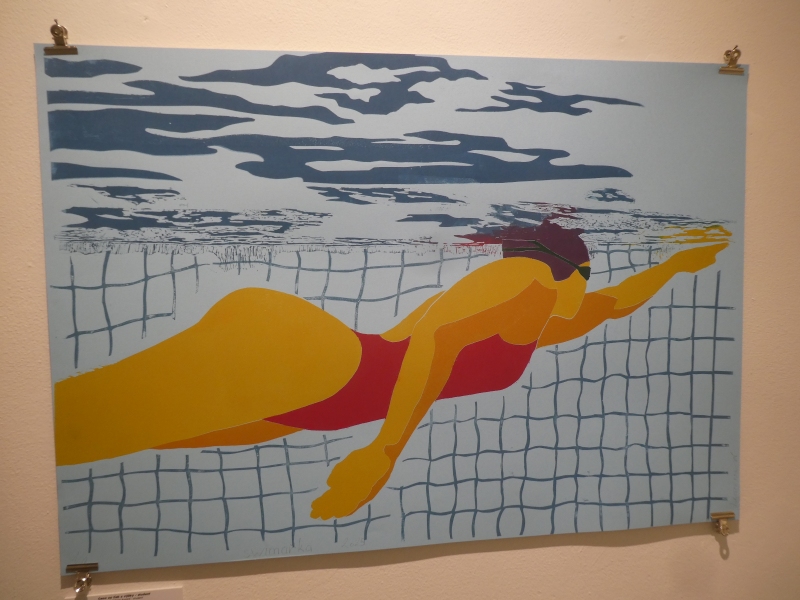 Sabina Lenzová za grafický list Swimařka, tisk z výšky, 1000 x 707 mm, 2024.