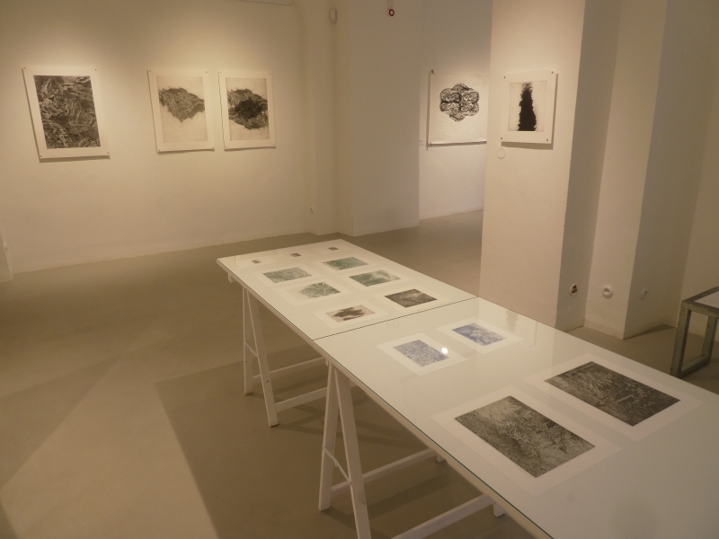 Autorka uvádí: Poloniny, místo, odkud pochází moje rodina. Do kresby rozlehlých plání vpletené, zauzlované, tušené příběhy mých předků, pomalu zaznamenávané na zbroušený povrch litografického kamene. Vrstvení, překrývání, skládání linií a barev, doufání v úplnost.