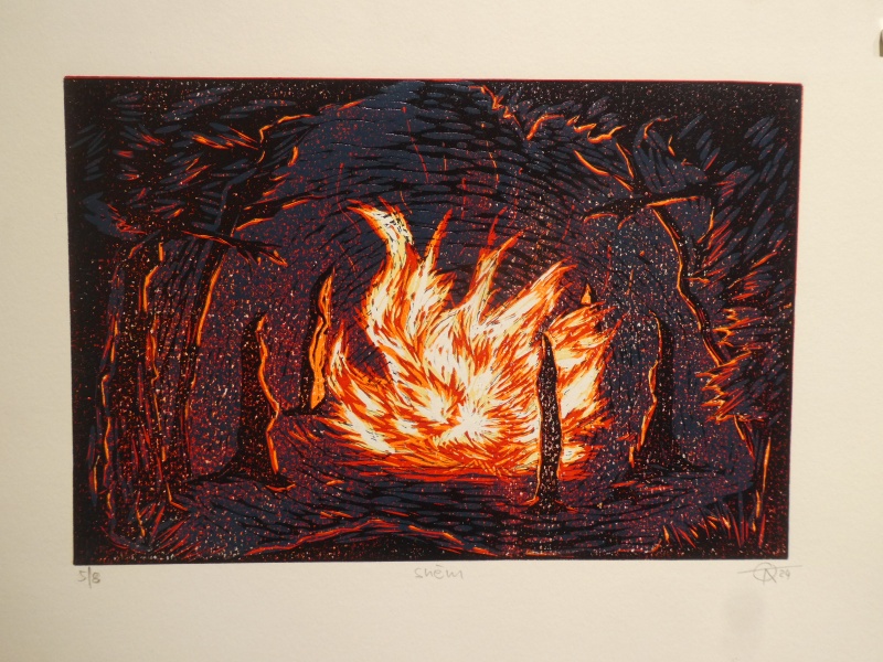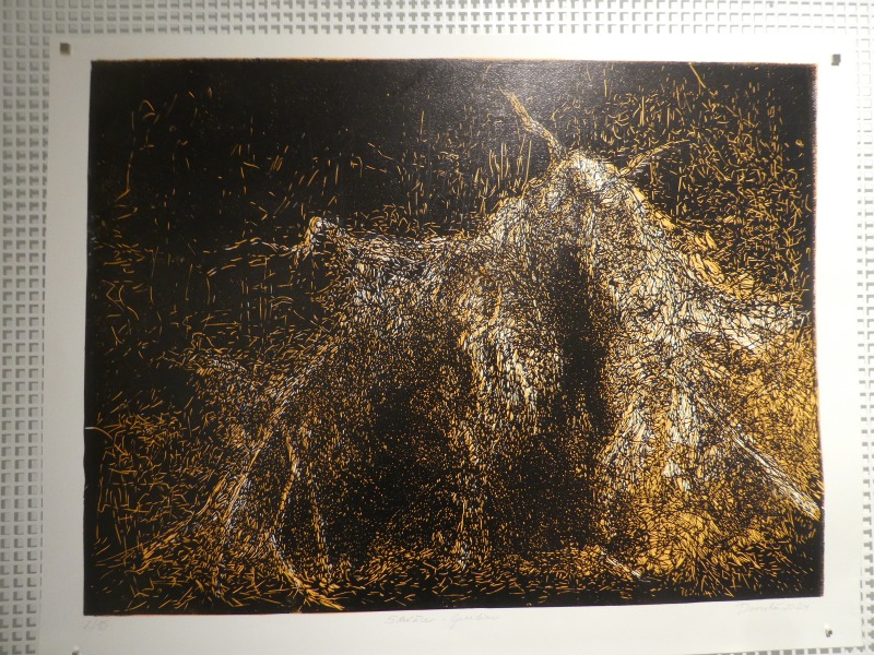 Peter Kollár za grafický list Duchem pryč, linoryt, 140 x 210 mm, 2024.