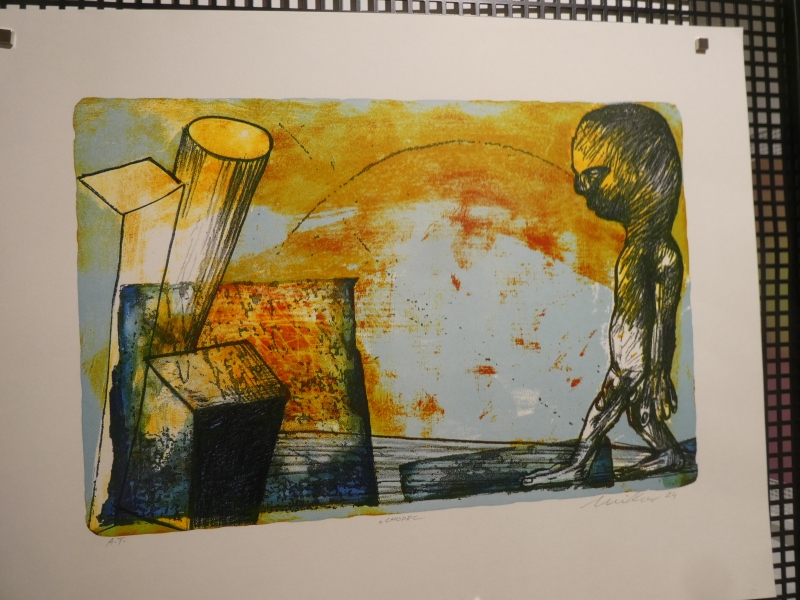 Vyjádření poroty: Porota ocenila gestuální dynamickou kompozici s výraznými barevnými akcenty a kvalitní technologické zpracování v litografické technice.