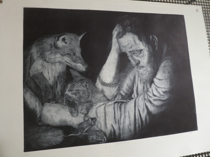 Pavel Kytner za grafický list Snažili se schovat, ale byli příliš velcí, čárový lept, 440 x 670 mm, 2024.