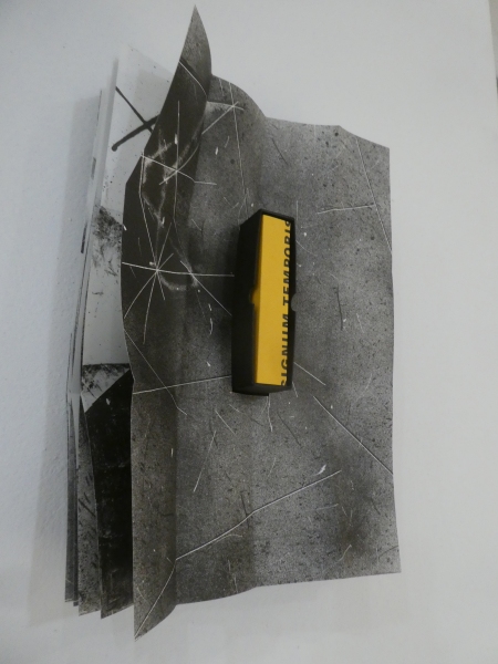 Marek Borsányi za autorskou knihu Střelecký deník, tisk z výšky na starých mapách, terč, ručně psaný text, perforace šípy, 210 x 90 x 320 mm.
