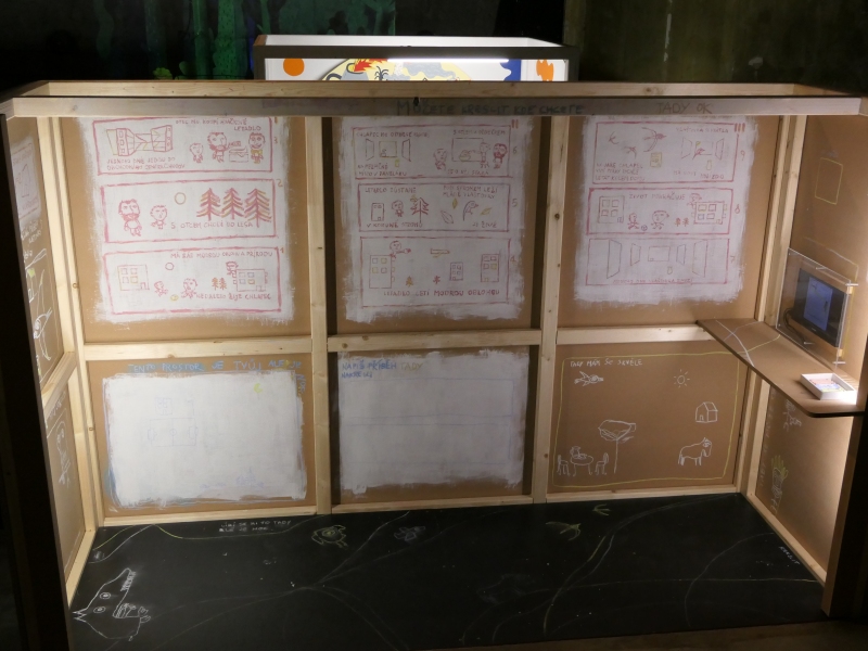 Součástí výstavy je interaktivní prostor, místo pro dílny a workshopy nebo jen pro aktivní hru.