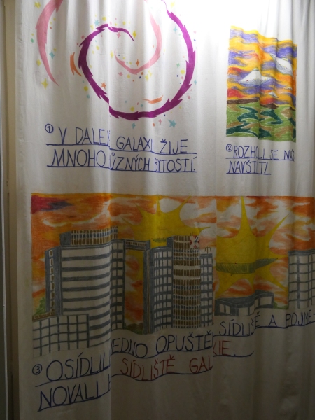 Snahou autorů „ilustrované výstavy“, vytvořené přímo pro prostory Galaxie, je znovu otevřít téma sídliště a života v něm. Po předchozí výstavě „Sídliště“ se tentokrát obracejí více na dětské návštěvníky a nabízí spoluúčast na instalaci, možnost zapojit se aktivně do výstavy, pokračovat v načatých nebo přímo vytvořit vlastní příběh. Pro výstavu jsme přizvali současné umělkyně a umělce, kteří se ve své práci soustředí na ilustraci, komiks nebo animaci.