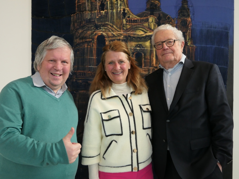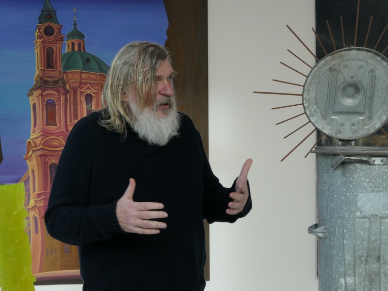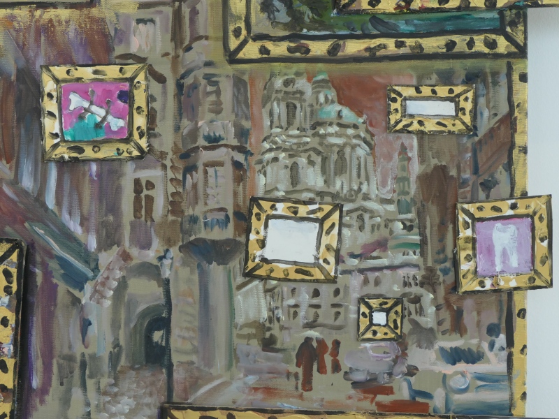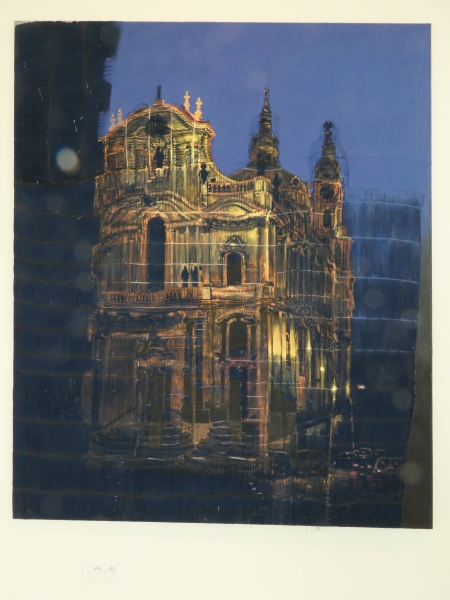 Že má Praha své neoddiskutovatelné magické kouzlo, dokládá i moment, kdy si coby sběratelé vyzkoušeli roli mecenášů. Boudewijn totiž obdivuje jeden z nejslavnějších barokních chrámů Prahy, kostel sv. Mikuláše na Malé Straně. Spolu s Yvette proto zadali pětici výtvarníků neobvyklou zakázku: vlastní pojetí této ikonické památky ve velkorysém formátu 200 × 240 centimetrů. Tomáš Císařovský, Martin Mainer, Antonín Střížek a Jakub Špaňhel na zadání kývli, ale František Matoušek, který pracuje s vytrhávanou džínovinou širokou 90 centimetrů, je odmítl. „Takhle velké obrazy nedělám,” řekl. O to větší bylo pro manžele překvapení, kdy se jim po půl roce ozval, že je obraz hotový a můžou si ho vyzvednout. Denim sešil a objevil pro sebe další možnosti své specifické umělecké techniky.