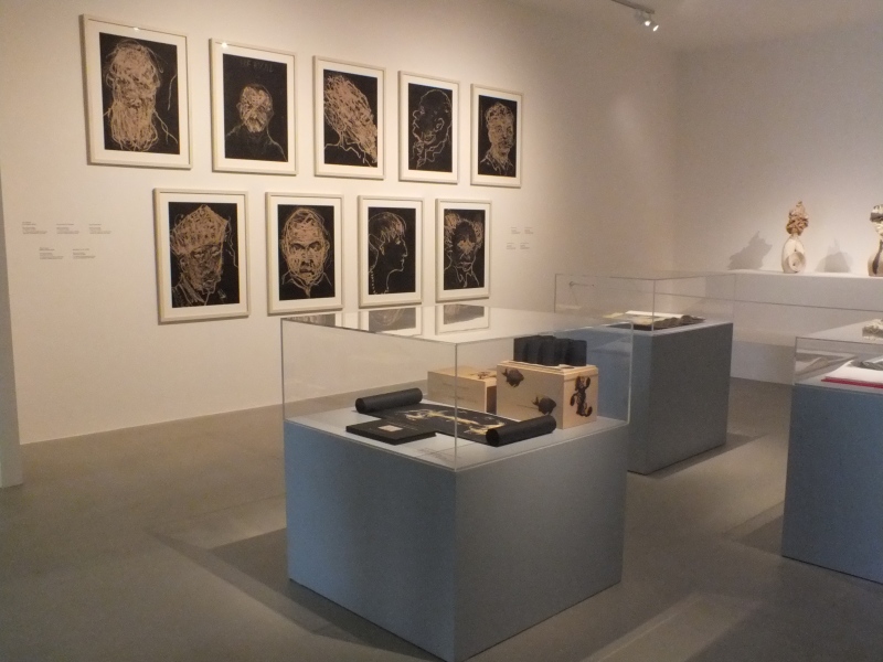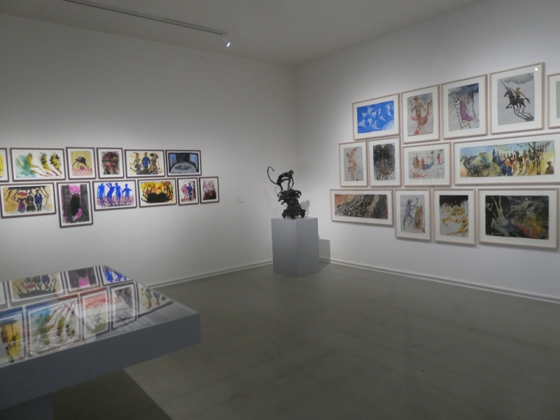 Představeno je také několik bronzových soch souvisejících s literárními tématy, dále série keramických portrétů filozofů, které jsou pojaty spíše expresivně než realisticky, a série portrétů slavných spisovatelů provedených technikou xylografie.