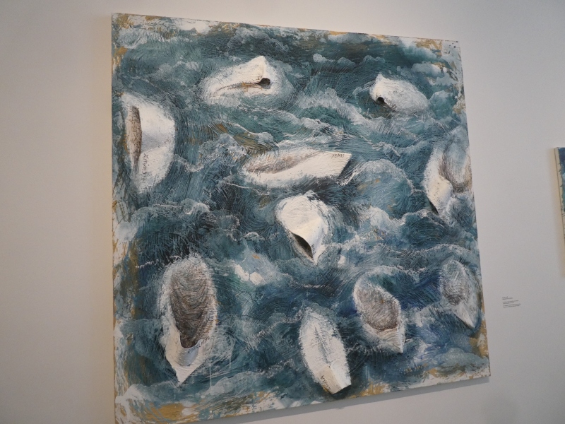 Podle kurátora výstavy Enriqua Joncosy mají Barcelóovy ztroskotané lodě na první pohled zřejmý politický podtext: „Odkazují k hrůzným zprávám o utonutí afrických imigrantů, kteří se denně pokoušejí přeplout Středozemní moře na vratkých bárkách, a dostat se tak do Evropy. Tyto události, těžko je neoznačit za strašné, vyvolávají v určité části veřejnosti intenzivní vlnu odporu. I v těchto obrazech ztroskotání najdeme některé s přesnými literárními odkazy. Pecios (kombinovaná technika na plátně, 2020) zobrazuje deset převrácených lodí plujících na rozbouřeném moři,“ uvádí kurátor.